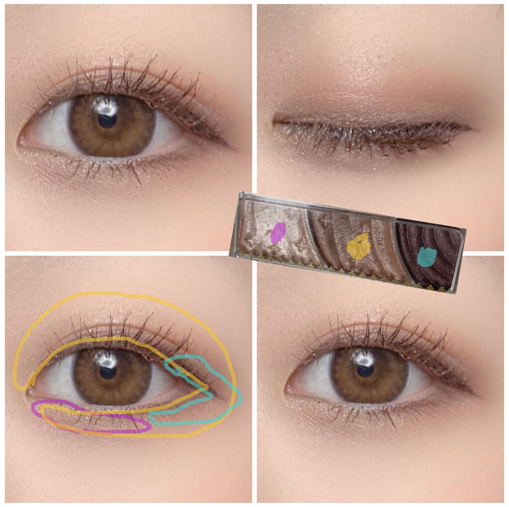 - 3色で簡単に明るく大きな目元に。 しっとり感触のアイシャドウ。 くすみを飛ばす明るさベース、ひとえ・奥二重の方でも幅広く塗れる肌なじみの良い中間色、 濃密高発色の締め色が目の輪郭を強調し大きな目元に。 微細パール配合でくすみを飛ばし、明るい目元へ。