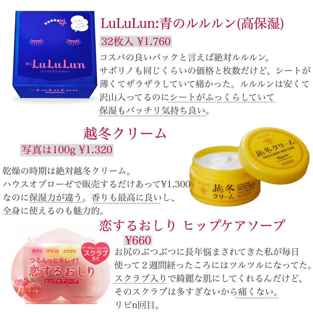 | スキンケアランキング第21位 | お手頃な価格で これだけしっとり感がプラスできるなら 秋冬の乾燥が気になる季節には ぜひ使ってみてもらいたい! | 詳細を見る | |