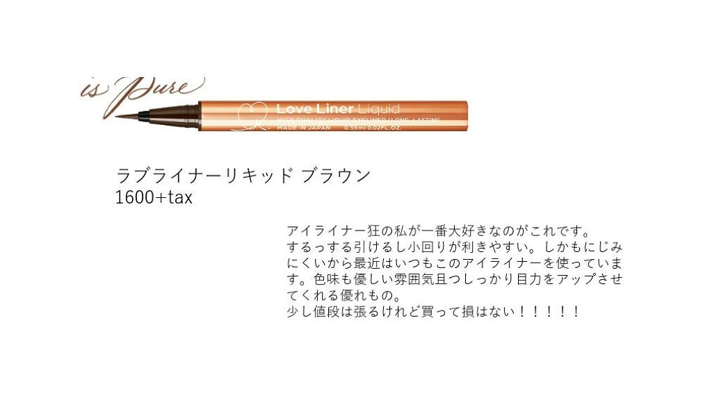 | メイクアップランキング第69位 | ラブライナーのアイライナーってほんと描きやすいから好き!重みのあるアルミボトルもお洒落な上に使いやすい | 詳細を見る | |