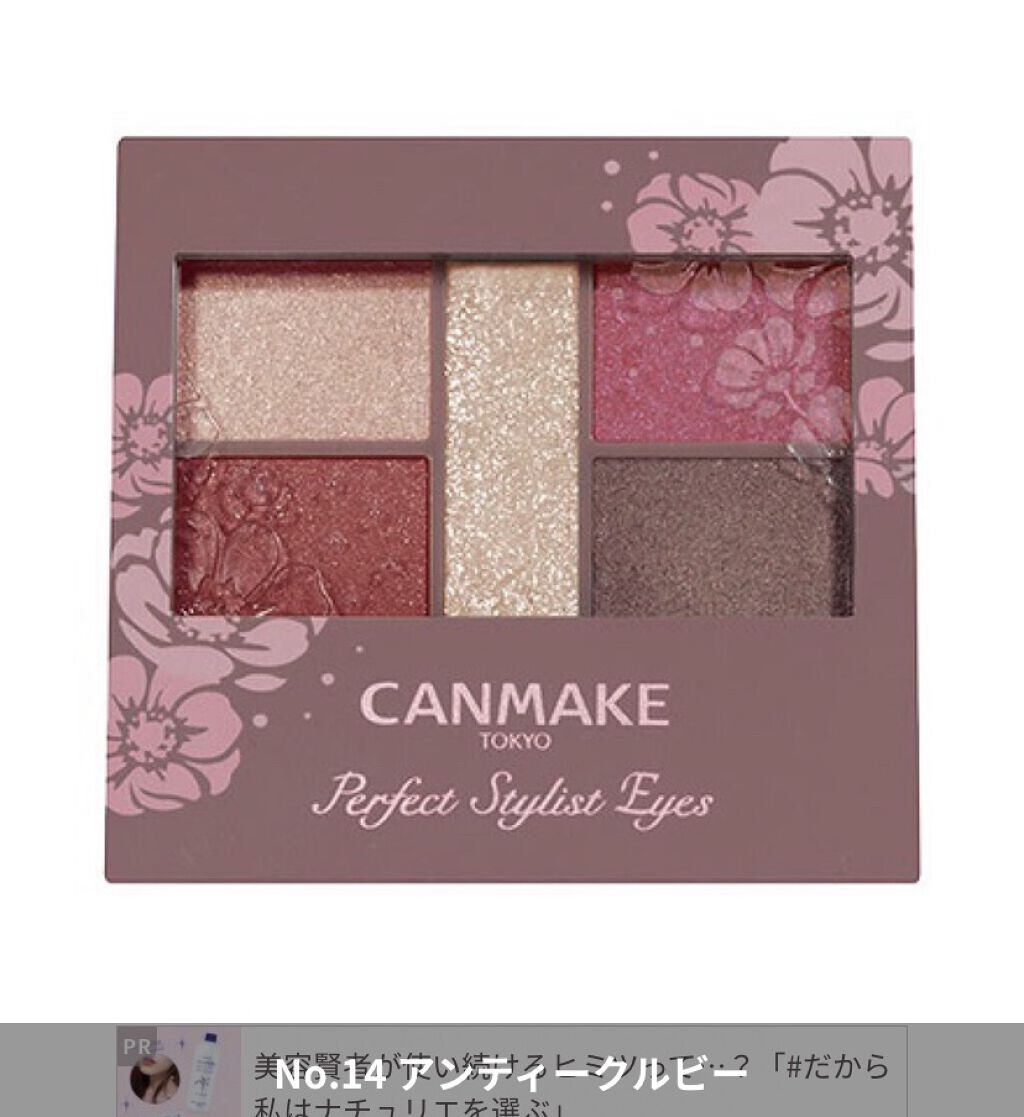キャンメイクパーフェクトスタイリストアイズ14アンティークルビーはじめは結構しっかりとした配色で使いづらいかな?と思ったのですが、意外と馴染むし、結構盛れる🌹🫧ディナーとかでも、目元パキッと見せてくれて好きなパレットです❤️🔥時間が無い時に...