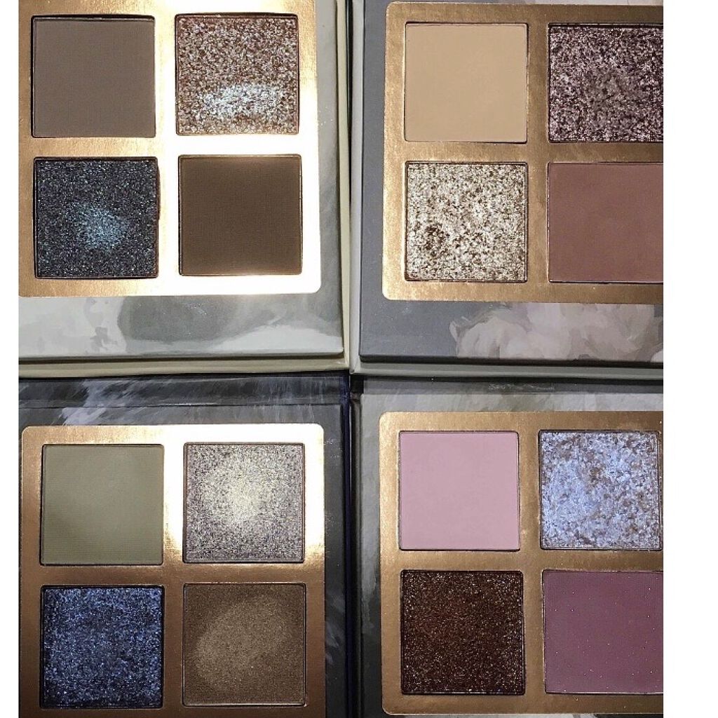 可愛い4色アイシャドウ✨ 落として②がひび割れました😂 見た目が③は黒にラメのシャドウかと思っていたのですが 塗って肌にのせると赤っぽい、ピンク紫?っぽい感じの色でした❣️ ポイントで涙袋キラキラするので涙袋に使用しても可愛い感じでした💕
