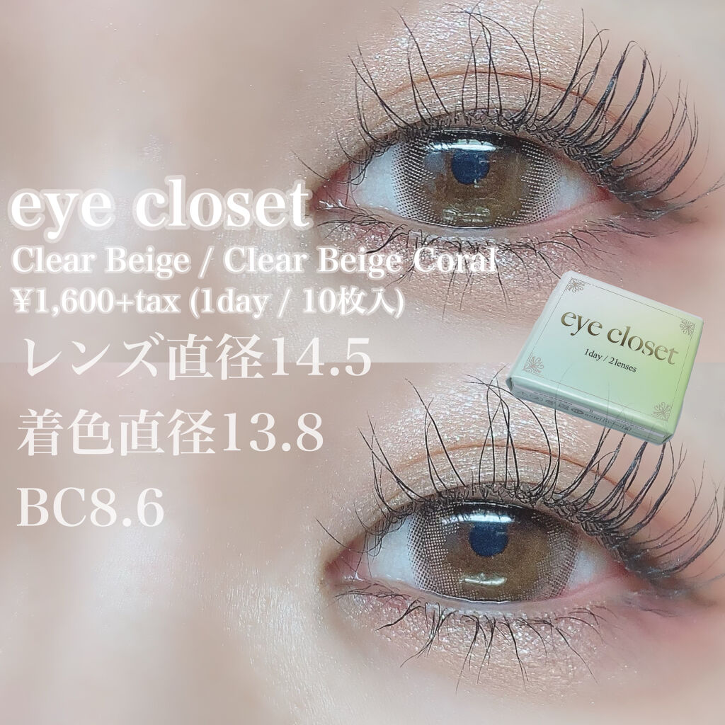 - ナチュラル&色素薄い系カラコンの『eye closet』 ナチュラルな発色でも14.5mmのレンズが目元を華やかにしてくれます。 ツヤのある発色がモテナチュラルな甘い瞳を演出