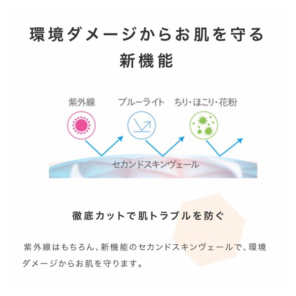 - やさしさで、美肌を守り抜く 1本で日やけ止め、美容液、メイク下地の3役を果たし、1年を通してお使いいただけるノンケミカル処方※1の高機能日やけ止め。紫外線やブルーライトからもやさしく肌を守ります。全30種類の美容成分配合で、保湿ケアや透明感※2ケアも。メイク下地として肌色を補整し、メイクくずれも防ぎます。 ※1 紫外線吸収剤不使用 ※2 潤いによる