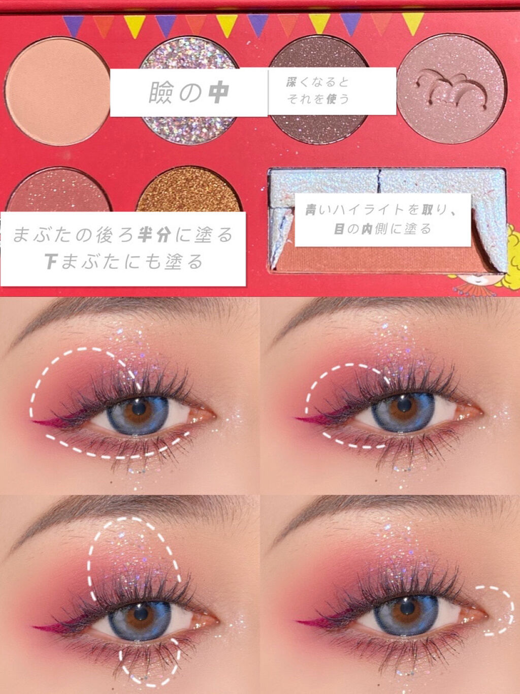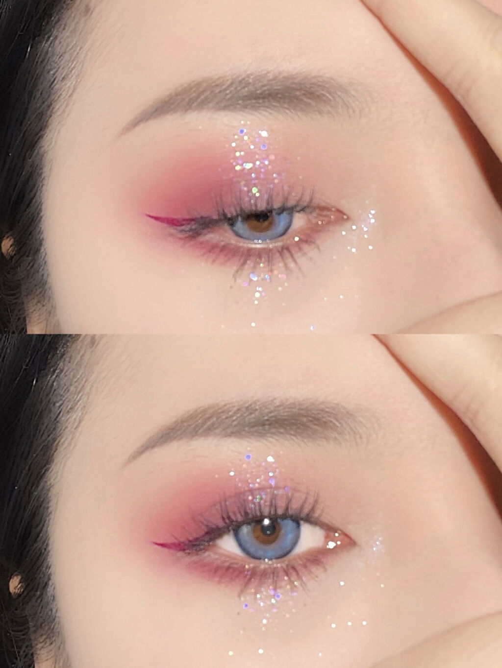 TASU她素アイシャド➕cococonpopoカラーコンタクト赤いアイシャドウでとてもユニークです❤️まぶたの後半だけ深い赤を塗っと非常にカッコいい、目は確かに拡大しています下まぶたは平らなブラシでブラッシングすることができます背景色がとても...