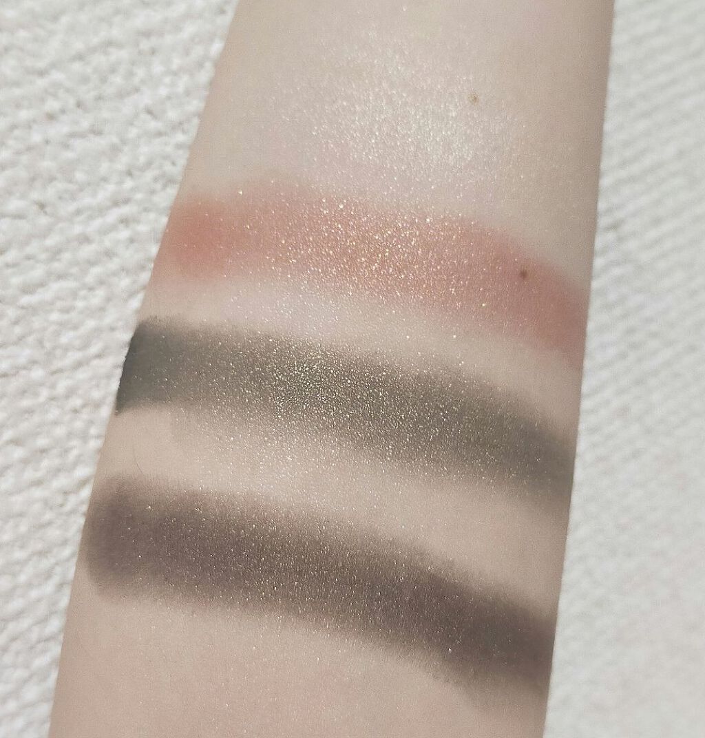 発色がふわふわ ぼかしやすくて馴染みが◎ マットっぽい(ラメ、パールではない)けどやや光沢感 上品でサテンっぽい感じ。 プチプラ界では他に見ない発色の仕方をします。 噂によるとこれのオレンジ系をかの白石麻衣様も使っておられるとか。 納得のクオリティ。 二色を暈してグラデーションにするのがすごく簡単 迷わずきれいなグラデーションを作りたいならコレ!