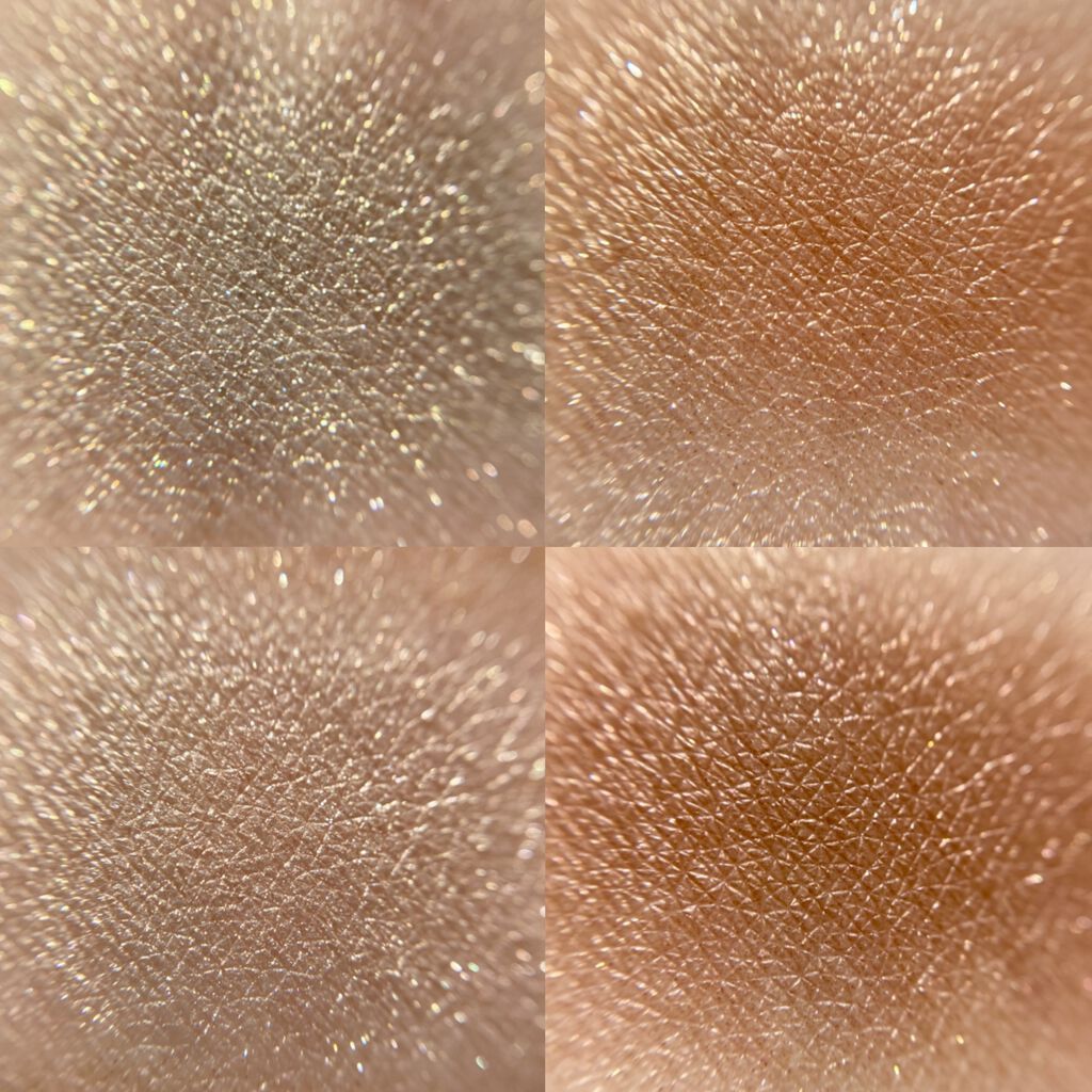 やっぱり可愛い…! 思ったよりコンパクトなサイズ感のアイシャドウパレットでした! このパレット全カラー使いやすい!! アイシャドウパレットのブラウンカラーは2色とも柔らかい発色なので使いやすい♡ そしてパールシマーのラメ感が可愛すぎる♡ 全体的に淡く柔らかい発色なのでとくにナチュラルメイクが好きな方におすすめしたい 𓂃 𓈒𓏸