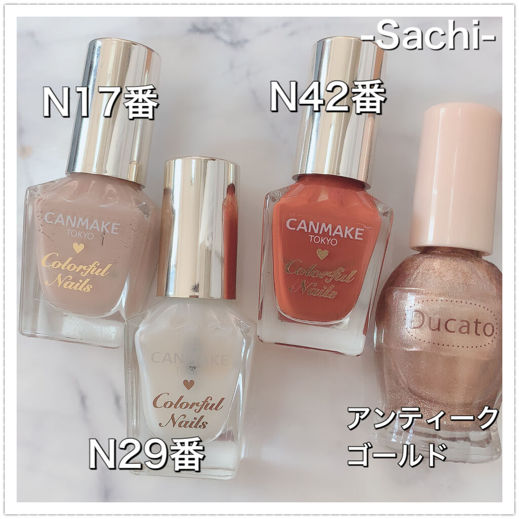 100円ショップに行くとついつい買ってしまう貼るジェルネイルのシリーズ🥰 今回も可愛いデザインが売っていたので、さっそく使って楽しみました( ˶ˆoˆ˵ ) ツイード柄のデザイン、以前から素敵だなと思っていたので簡単に挑戦出来て嬉しいです⸜(* ॑꒳ ॑* )⸝💓 今回使用したネイルカラーは、いつも使っているキャンメイクのカラフルネイルズ、🤎N79ドライフラワー 🤎N29ミルクシロップ 🤎N83ムーンレイの3色です(*´ ꒳ `*)!