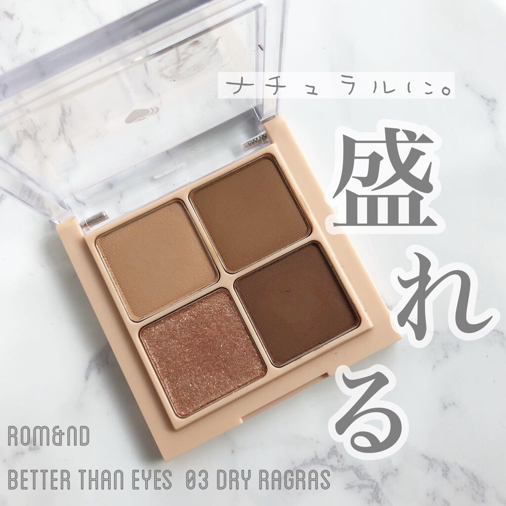 やっぱこのアイシャドウもナチュラルに盛れるからほんと好きだわ〜 ナチュラル発色だし、ほわっと柔らかい感じに仕上がるから好き!粉質もしっとり。 1色だけラメだけど、このラメもまた可愛いんだ✨ 繊細な感じのキラッキラ感で👍