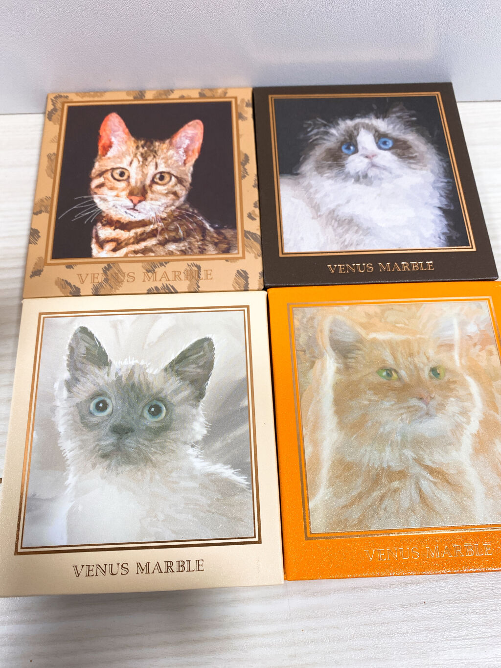 - 猫の「愛らしさ」「かわいらしさ」「優しさ」それぞれの性格を色彩で表現した4色アイシャドウパレット。 油絵で描かれたパッケージは可愛いさはもちろんデザイン性に富んでいます。 ※注意:お使いのデバイスの利用環境やお部屋の照明等により、商品画像の色味の見え方は異なる場合がございます。