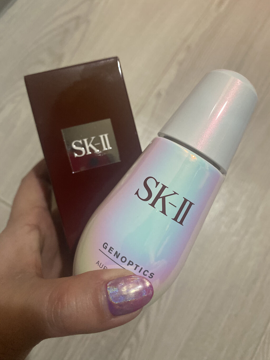 - SK-IIベストセラーの美白*美容液です。 濃縮SK-IIピテラ™が肌本来の働きを整え、しっとりした使い心地のエッセンスが肌に素早くなじみ、美白有効成分を肌の奥*へと届けます。 紫外線のダメージによるシミやくすみを防ぎ、内側から輝くようなオーラ肌へ。 ●使用成分について ピテラ™とジェノプティクスオーラカクテル*を配合した独自の複合成分が、シミ・肌曇り*の気にならない、内側から輝くようなオーラ肌へと導きます。 ・ジェノプティクス オーラ カクテル* 濃縮SK-IIピテラ™*、D-メラノ™*、プラムエキス*、イノシトール、プルーンエキス*、ピクセルホワイトTM *5を配合した複合美白成分。シミや肌曇り*を防ぎ、明るく輝くようなオーラ美白肌へ導きます。 ・プラムエキス* ビタミンやミネラルが豊富で、保湿作用に優れたエキス。肌ストレス*によるダメージを防ぎます。 ・濃縮ピテラ™* 特別な酵母の自然な発酵から生まれる貴重な成分であるピテラ™を濃縮したもの。ビタミン類、ミネラル類、アミノ酸類などの50種類を超える有用成分を含み、肌本来の健やかさを保つ力が最大限に引き出されています。 ・プルーンエキス* 日本の梅から抽出したエキス。保湿作用に優れ、肌のくすみ*を抑える働きがあります。 ●得られる効果 ツヤを与える・しみを防ぐ*・キメを整える ●お手入れ方法 ステップ1:化粧水で肌を整えた後、適量(スポイト1回分、直径2cm大)を手のひらに取ります。 ステップ 2:顔全体にのばし、肌になじませます。 ステップ 3: 気になる部分には重ねづけし、指で軽くたたきこみます。 ●使用するタイミング 朝夜2 回/日