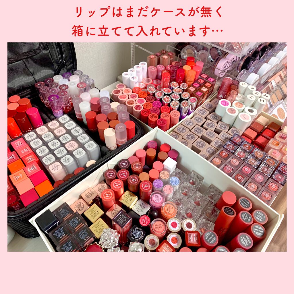 恐らく4畳半の部屋で過ごしている趣味部屋 旦那と分割しているのもあり、なかなか広々と使えない、 たくさんのコスメをなるべく詰め込みたくて作ったコスメ収納です🎶 私的おすすめ収納用品 *ニトリのカラーボックス *コマ付きラック *無印の書類整理ボックス