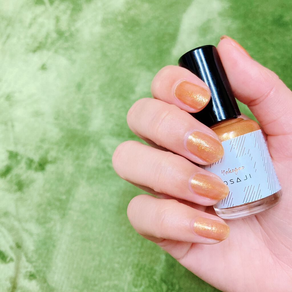 今季のOSAJI、購入カラーは507 Yumeyumeのみ。淡いライラックピンク、ゴールドパール入り。清楚なカラーでした。 陽射し撮影だと反射で強いゴールドには見えないですが、白色灯下撮影のカラーチャートでは微細なゴールドパールがより分かるかと。 カラーチャート…4枚目