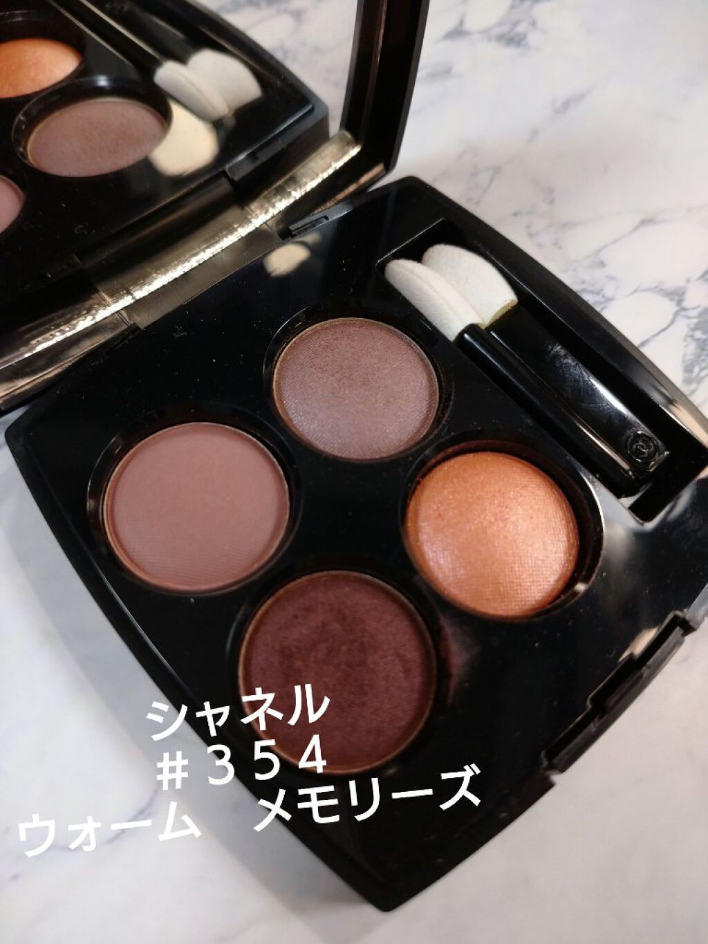 CHANELレキャトルオンブル354 ウォームメモリーズ#レキャトルオンブル354#ウォームメモリーズ使用頻度が一番高いこのアイテム。RMKでメイクレッスンを受けてから、既存のアイシャドウパレットもメイク方法活かせるのかな?と思って、一回全色...