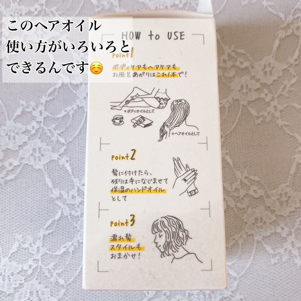 | ヘアケア・スタイリングランキング第8位 | さらっとした扱いやすいオイル ! ドライヤーの前に使うのはもちろん、乾いた髪につけてもベタつかなくてすごい! | 詳細を見る | |
