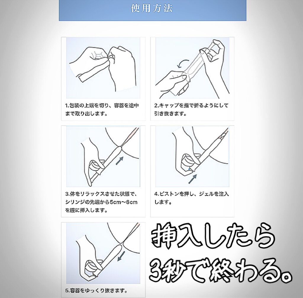 なので、挿入注入したあとに、セぺのように勢いよく、逆流して洗い流すタイプとは少し違う。