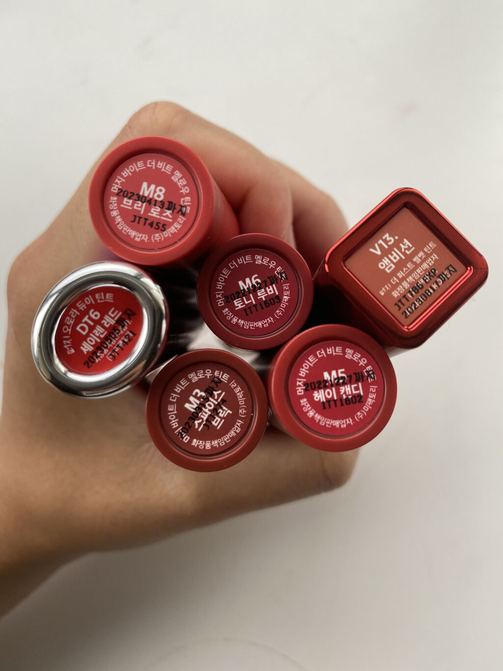 テクスチャーが変化していくティントです! 速乾性があるのですぐにサラサラのマットにテクスチャーが変わっていきソフトマットな仕上がりに。 テクスチャーが変化していく時に水分が蒸発するのと同時に唇へピターっと密着してくれるので食べたり飲んだりしてもほとんど取れない上にマスク付きもかなり少ないです✨ こんなに持ちがいいのにクレンジングでは簡単にするっと落ちて色素沈着もしないので肌への負担も少なそうな点も個人的にはかなりポイント高めです❤️❤️ 06.Soft Walnut ブラウンレッド系で新色の中でも特に深みのある色🍂 07.Cranberry Plum グレーがかったローズでブルベ寄りなカラー。華やかさもありつつ上品さもある色合いでした❤️ 08.Dusty Beige ブルベ大優勝✨ 青みがかったピンクベージュで肌馴染みの良さそうなカラーです!