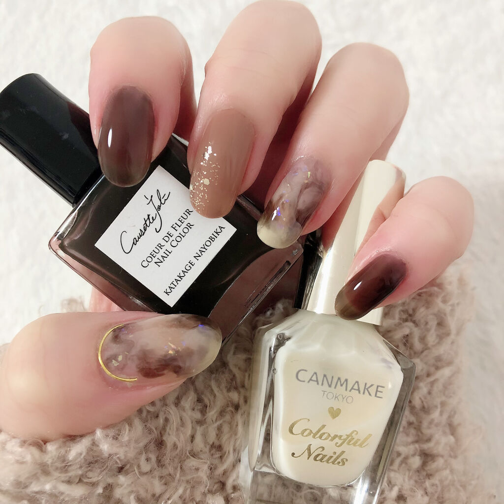 100円ショップに行くとついつい買ってしまう貼るジェルネイルのシリーズ🥰 今回も可愛いデザインが売っていたので、さっそく使って楽しみました( ˶ˆoˆ˵ ) ツイード柄のデザイン、以前から素敵だなと思っていたので簡単に挑戦出来て嬉しいです⸜(* ॑꒳ ॑* )⸝💓 今回使用したネイルカラーは、いつも使っているキャンメイクのカラフルネイルズ、🤎N79ドライフラワー 🤎N29ミルクシロップ 🤎N83ムーンレイの3色です(*´ ꒳ `*)!