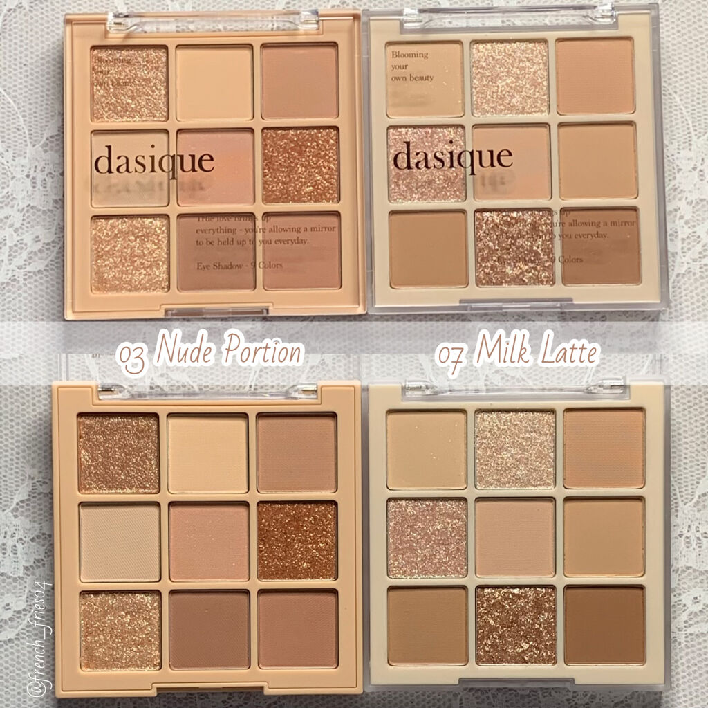 - 【舞台上のバレリーナの繊細な動きと抑制された美しさを再解釈した、dasiqueならではのバレエコアコレクション】 シマー、マット、パールなどバリエーション豊かなテクスチャーで、軽やかにまぶたにフィット。粉飛びしにくく、指先で簡単に美しい仕上がりが叶います。 柔らかいピンクベースから深みのあるシェードまで揃い、1つのパレットで普段使いのデイリーメイクから特別な日の華やかメイクまで幅広く楽しめます。 - 活用しやすいテクスチャーとカラーバリエーションで毎日新しいムードを完成してくれるデイジーク シャドウパレット。 デイリーメイクからポイントメイクまで演出が可能。 感覚的な9種類の色味でムードUP! 多彩でウェアラブルなテクスチャーで高い活用度!