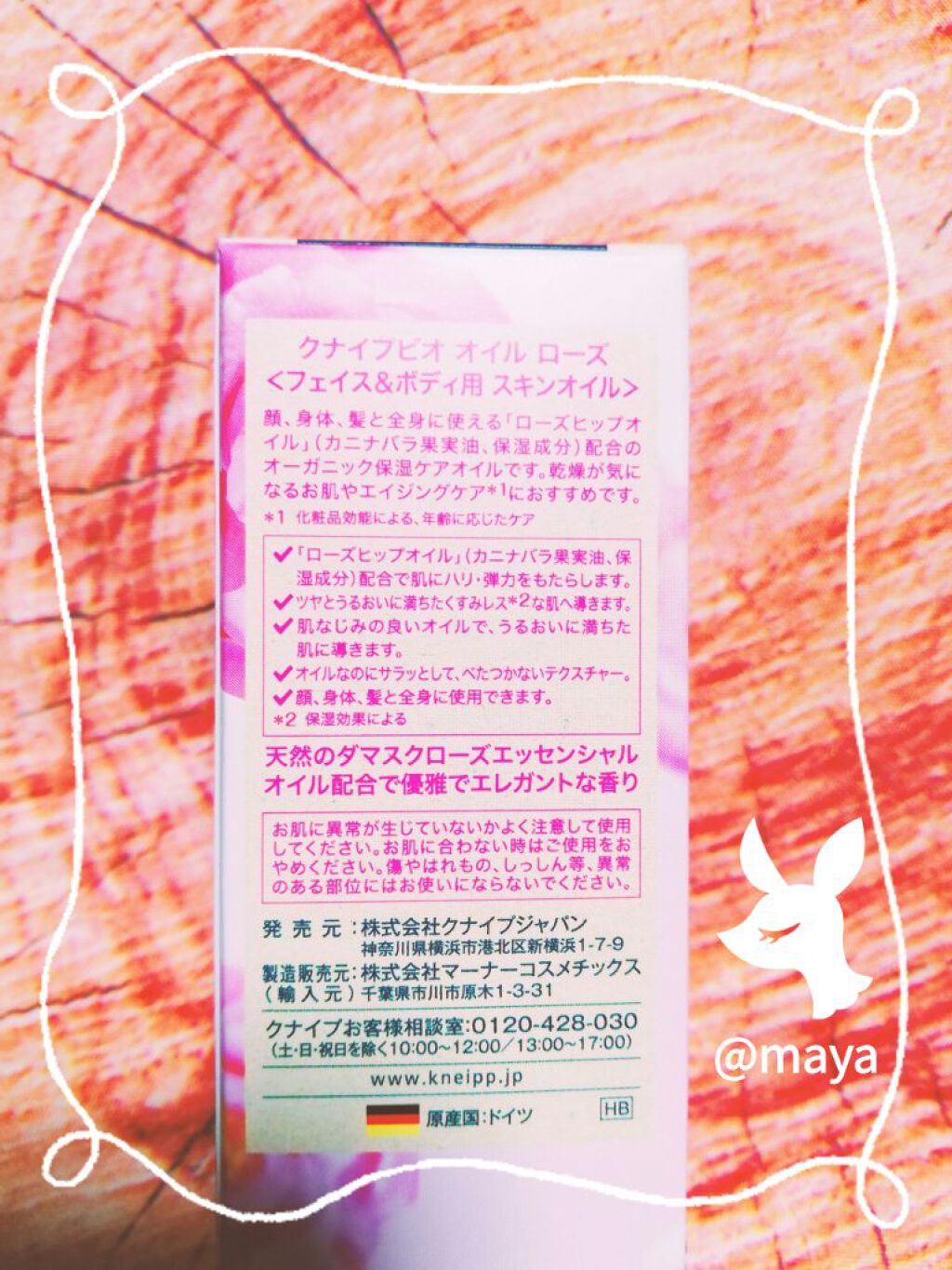 商品詳細情報クナイプ クナイプビオ オイル ローズ