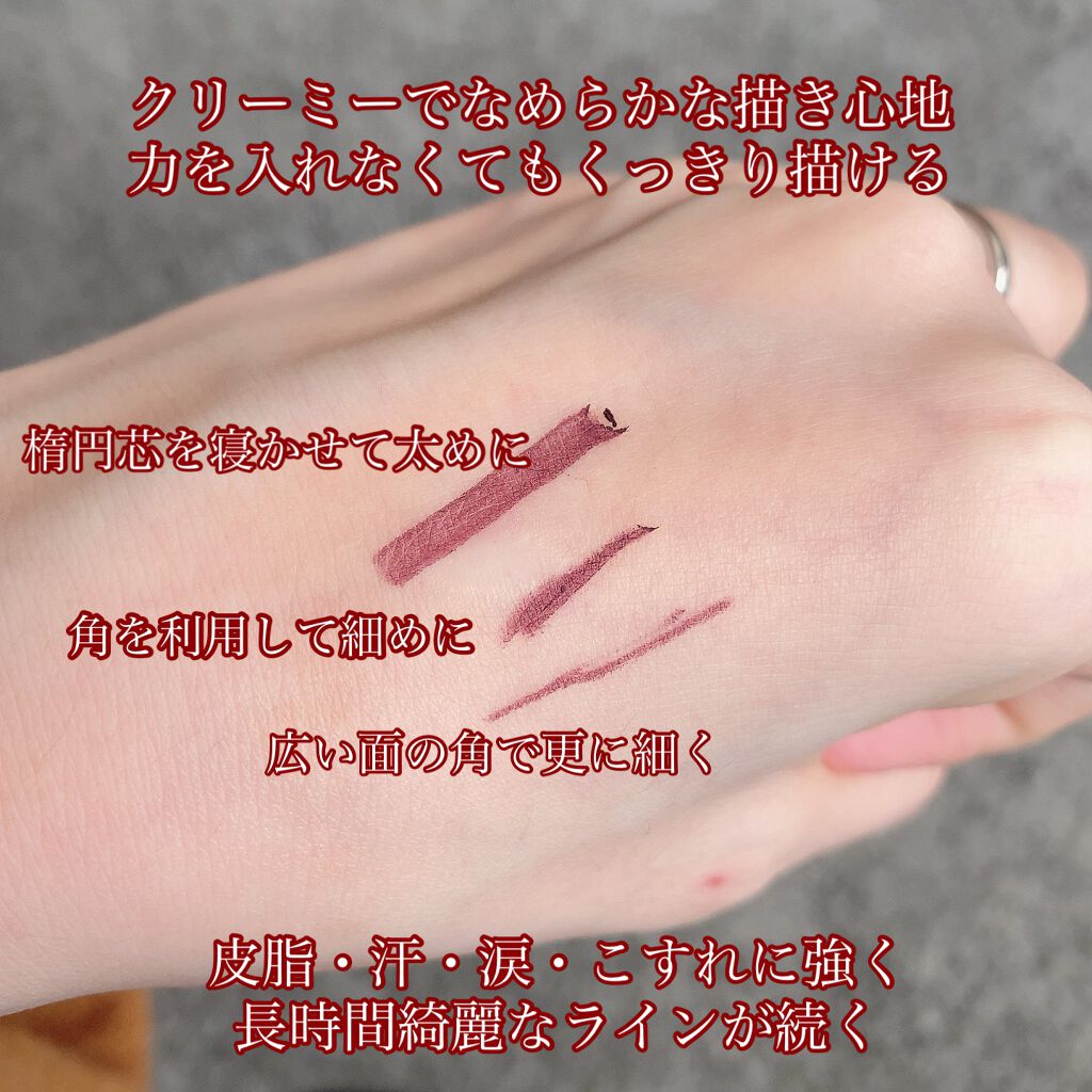 - なめらかなのに、にじみにくい クリームペンシル楕円芯タイプ ・細くも太くも自在に描ける1.5mm×3mmの楕円芯 ・自然なラインが長時間続く*スーパーウォータープルーフタイプ ・肌当たりが非常にやさしく、なめらかに描ける処方を採用 *効果には個人差があります