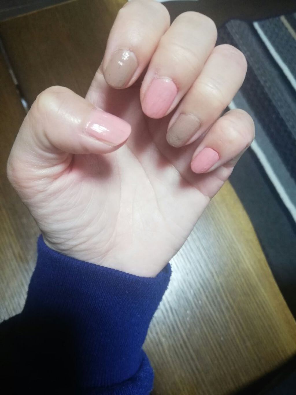 色落ちが早くって😅 暗い色にしても二週間くらいで抜けてくる😭 黒にしかみえないけど若干光あたるとちょっと紫がかってるかなって感じです 色落ちいつまで持つかなぁ。。 もう秋がやってくるから暗めにしちゃった🤭 子どもらは茶色がいいって言われる始末ですが(笑)😅