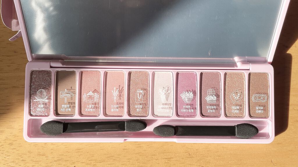 - 肌なじみの良い、鮮やかな発色で目元を華やかに彩る捨て色なしの10色アイシャドウパレット 異なる3種のテクスチャーを自由に組み合わせて、グラデーションも思いのままに。 NEW 2023.4 ・肌トーンにあう配色を詰め込んだトレンドカラー 肌トーンに合わせて、自分に似合うトレンドカラーが楽しめる♡ パーソナルカラー×トレンドカラーの掛け合わせパレットで、デイリーメイクもスペシャルメイクも気分にあわせてなりたい自分に! ・むにゅっとジェル質感ラメで高密着、煌めく目元 パレットの中でもポイントとなる大きめ粒子のラメは、ジェルのような新質感で落ちにくく肌にぴったりと密着します。キラキラとした目元をキープします。 ・使うカラーは大きめに!リアル捨て色なしパレット ベースやラメのよく使うカラーと締め色や濃い色等の減りが少ないカラーを異なるサイズで詰め込んだ、リアル捨て色なしパレット! <使用方法> 付属のデュアルシャドウブラシでベースカラーをまぶた全体に塗り広げます。細いブラシでグラデーションや目尻、アイライン、涙袋などのポイントカラーをのせて仕上げます。