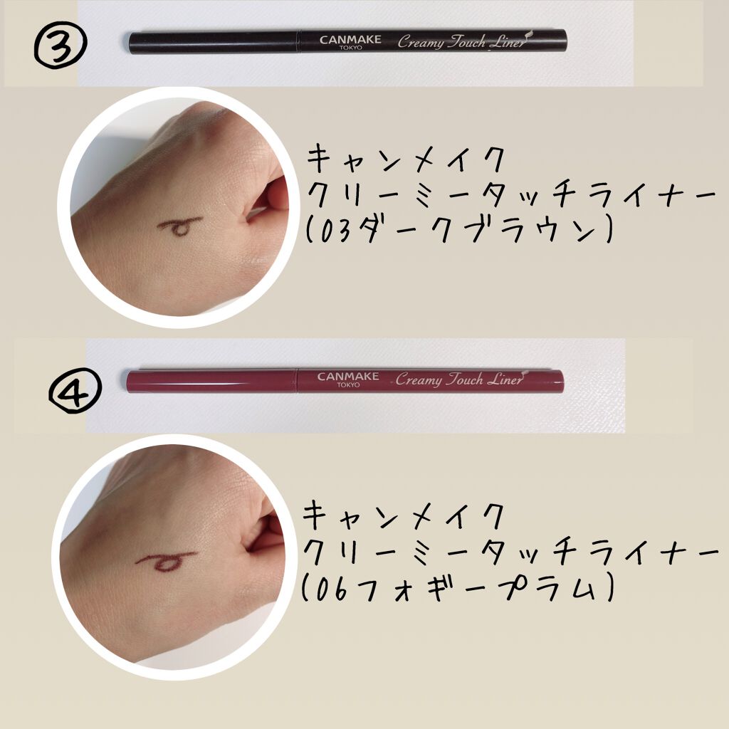 \用途が変わったので再レビュー♡/・キャンメイククリーミータッチライナー06フォギープラム¥715🌹前は普通にアイライナーとして使ってた!!でも私には"涙袋の影用"として使う方が合う🫶🫶アイライナーとして↓↓・落ちやすい(やや水と擦れに弱い)...