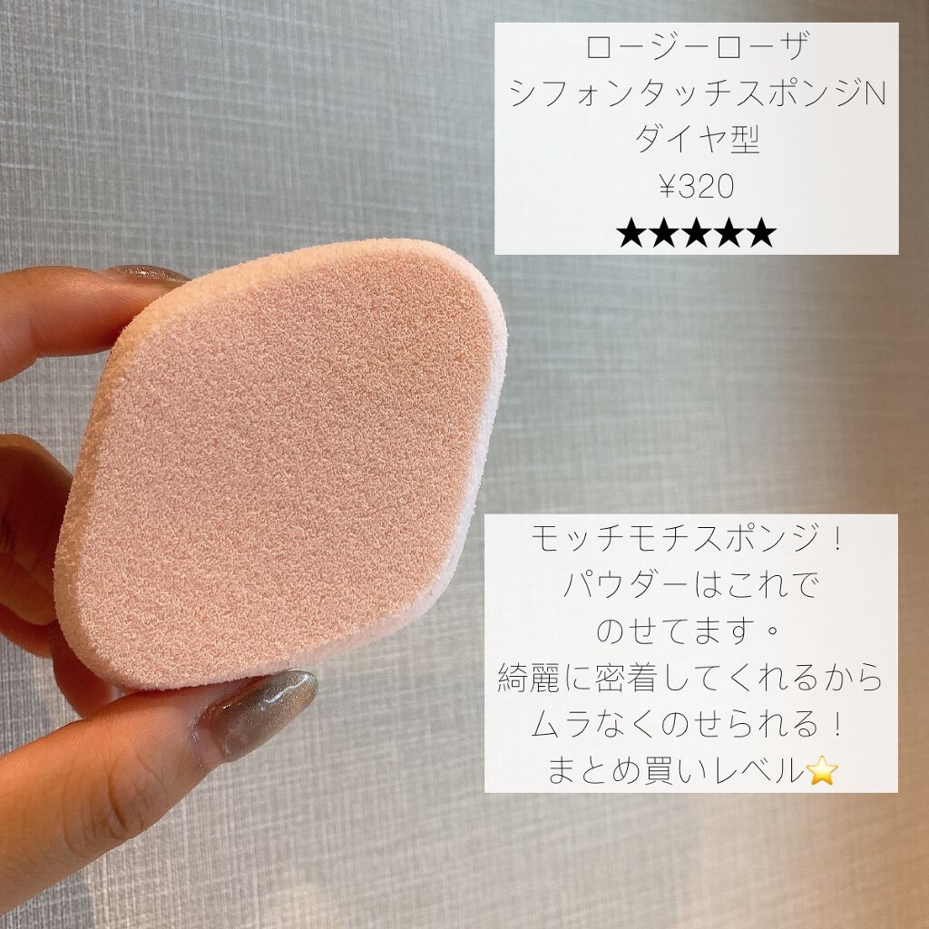 \ふわっふわ質感のメイクスポンジ/ロージーローザシフォンタッチスポンジNダイヤ型1個入り私が昔々から溺愛しているロージーローザのシフォンタッチスポンジ💓💓大きさも使いやすく肌当たりもよくふかふかで使いやすいです😊コンシーラーを塗布したりベース...