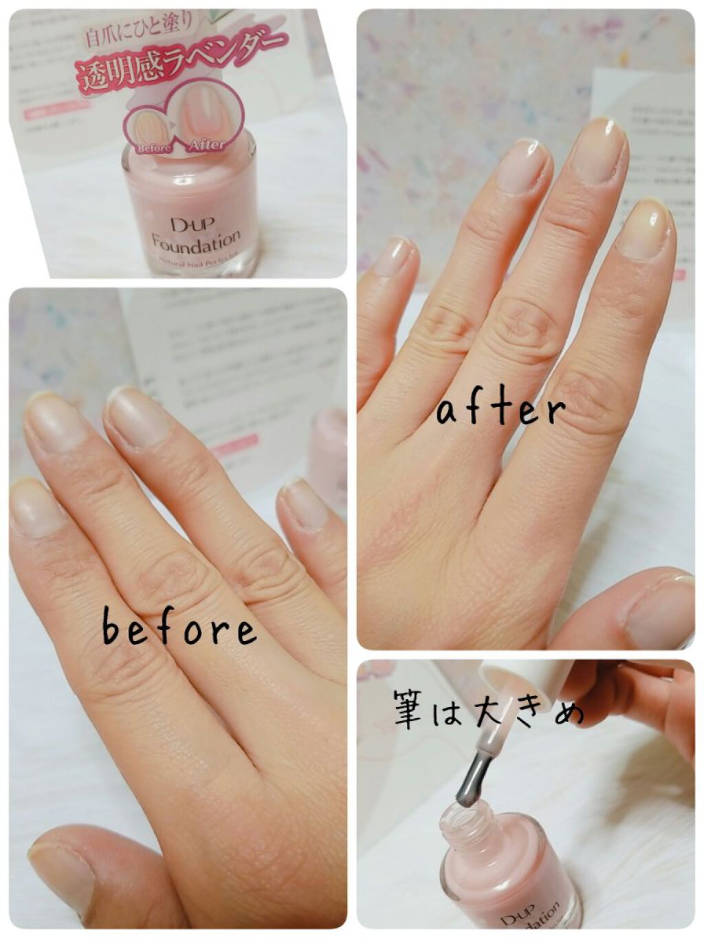 - ※商品パッケージを順次リニューアル。尚、これにかかる商品の返品交換は承っておりません。 ひと塗りで自爪に自然なツヤを与え、簡単に美しい爪に。 爪の色ムラや黄ばみをカバーし、ワントーン明るい健康的な印象に仕上げる爪のファンデーションです。 自爪が元から放つ「ナチュラルなツヤ感」と「美しく透き通った爪色」を演出します。マニキュアのベースコートとしてもお使いいただけます。 ★ヌードベージュ わざとらしくない自然なツヤ。 ★ナチュラルピンク ほんのりピンクに色づき、血色感アップ。 ★シアーラベンダー 優しいラベンダー色でワントーン明るい爪に。 ★ピュアミルク ふんわり透ける乳白色で、自然にトーンアップした美爪に。