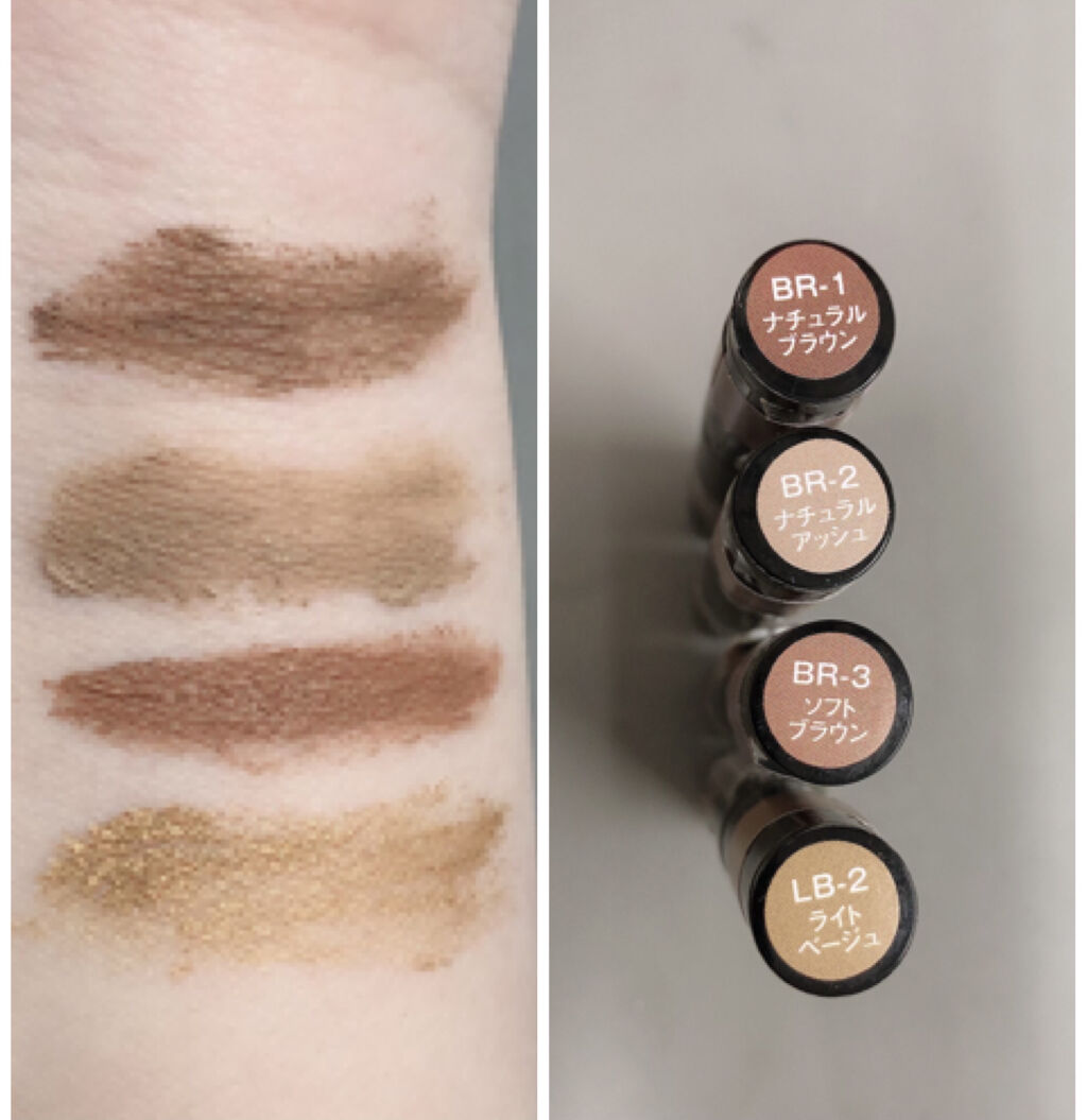 - <BR-1> 水、アクリレーツコポリマー、ステアリン酸、ミツロウ、DPG、カルナウバロウ、セテアリルアルコール、TEA、エタノール、ヒドロキシエチルセルロース、EDTA-5Na、ポリビニルアルコール、パンテノール、フェノキシエタノール、メチルパラベン、デヒドロ酢酸Na、(+/-)マイカ、ミリスチン酸亜鉛、酸化チタン、酸化鉄、水酸化Al <BR-2> 水、アクリレーツコポリマー、ステアリン酸、ミツロウ、DPG、カルナウバロウ、セテアリルアルコール、TEA、エタノール、ヒドロキシエチルセルロース、EDTA-2Na、ポリビニルアルコール、パンテノール、フェノキシエタノール、メチルパラベン、デヒドロ酢酸Na、(+/-)マイカ、ミリスチン酸亜鉛、酸化チタン、酸化鉄、水酸化Al <BR-3> 水、アクリレーツコポリマー、ステアリン酸、ミツロウ、DPG、カルナウバロウ、セテアリルアルコール、TEA、エタノール、ヒドロキシエチルセルロース、EDTA-2Na、ポリビニルアルコール、パンテノール、フェノキシエタノール、メチルパラベン、デヒドロ酢酸Na、(+/-)マイカ、ミリスチン酸亜鉛、酸化チタン、酸化鉄、水酸化Al <LB-2> 水、アクリレーツコポリマー、ステアリン酸、ミツロウ、DPG、カルナウバロウ、セテアリルアルコール、TEA、エタノール、ヒドロキシエチルセルロース、EDTA-2Na、ポリビニルアルコール、パンテノール、フェノキシエタノール、メチルパラベン、デヒドロ酢酸Na、(+/-)マイカ、ミリスチン酸亜鉛、酸化チタン、酸化鉄、水酸化Al <PU-1> 成分:水、アクリレーツコポリマー、ステアリン酸、ミツロウ、DPG、タルク、セテアリルアルコール、カルナウバロウ、TEA、エタノール、ヒドロキシエチルセルロース、EDTA-2Na、ポリビニルアルコール、パンテノール、フェノキシエタノール、メチルパラベン、デヒドロ酢酸Na、(+/-)グンジョウ、酸化チタン、酸化鉄、水酸化Al、酸化スズ、ホウケイ酸(Ca/Al)、赤226 <BR-4> 成分:水、アクリレーツコポリマー、ステアリン酸、ミツロウ、DPG、セテアリルアルコール、カルナウバロウ、TEA、エタノール、タルク、ヒドロキシエチルセルロース、EDTA-2Na、ポリビニルアルコール、BG、ポリアスパラギン酸Na、パンテノール、キサンタンガム、フェノキシエタノール、メチルパラベン、デヒドロ酢酸Na、(+/-)マイカ、酸化チタン、酸化鉄、水酸化Al、赤226 <BR-4> 成分:水、アクリレーツコポリマー、ステアリン酸、ミツロウ、DPG、セテアリルアルコール、カルナウバロウ、TEA、エタノール、タルク、ヒドロキシエチルセルロース、EDTA-2Na、ポリビニルアルコール、BG、ポリアスパラギン酸Na、パンテノール、キサンタンガム、フェノキシエタノール、メチルパラベン、デヒドロ酢酸Na、(+/-)マイカ、酸化チタン、酸化鉄、水酸化Al、赤226 <GY-1> 成分:水、アクリレーツコポリマー、ステアリン酸、ミツロウ、DPG、タルク、セテアリルアルコール、カルナウバロウ、TEA、エタノール、ヒドロキシエチルセルロース、EDTA-2Na、ポリビニルアルコール、パンテノール、フェノキシエタノール、メチルパラベン、デヒドロ酢酸Na、(+/-)グンジョウ、酸化チタン、酸化鉄、水酸化Al、酸化スズ、ホウケイ酸(Ca/Al)、赤226 <PU-1> 成分:水、アクリレーツコポリマー、ステアリン酸、ミツロウ、DPG、タルク、セテアリルアルコール、カルナウバロウ、TEA、エタノール、ヒドロキシエチルセルロース、EDTA-2Na、ポリビニルアルコール、パンテノール、フェノキシエタノール、メチルパラベン、デヒドロ酢酸Na、(+/-)グンジョウ、酸化チタン、酸化鉄、水酸化Al、酸化スズ、ホウケイ酸(Ca/Al)、赤226