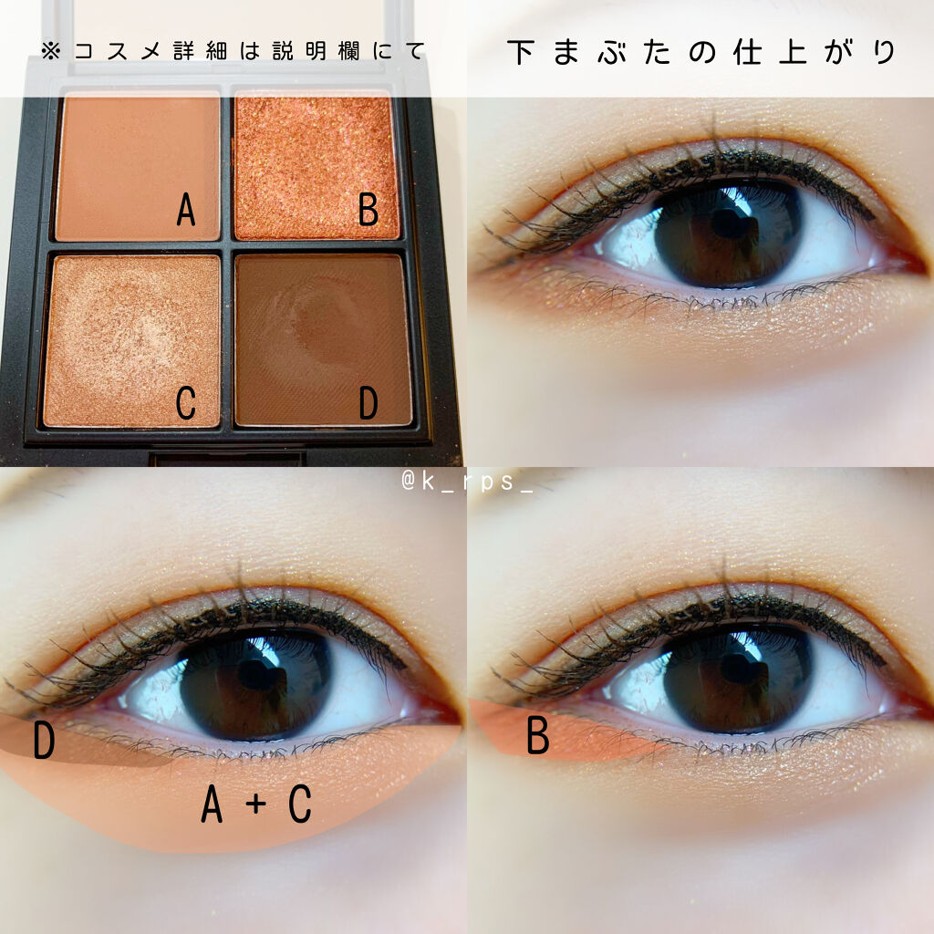 今回はURGLAMのブルーミングアイカラーパレットの新色04を使用して大人くすみメイクをしてみたのでご紹介します💓それではやり方いってみよー!▼上まぶた①Dのカラーをアイホール全体にのせます②Bのカラーを二重幅より少しオーバーめに目頭側から黒...