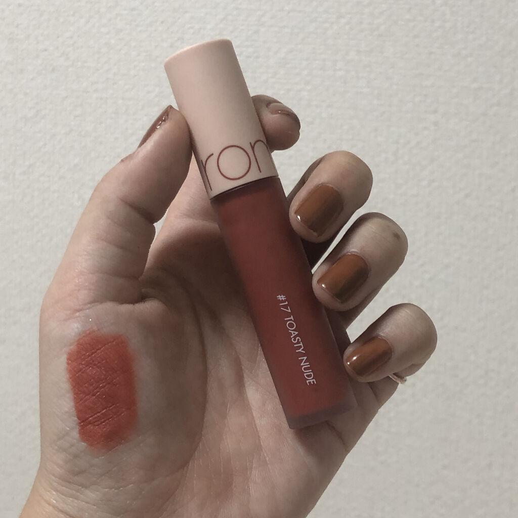 ブラウンに少しオレンジ味がある完全イエベ大優勝じゃないですか?🏆 液も軽くてマット特有の乾燥して唇バリッバリ、、ってことも無かったのでそこ高得点‼️✨ 結構私は落ちやすいなと感じました💦 コップとかにまあまあ着いちゃうなと思いました🥲 今マスクの季節でマスクにも多少着いてしまう感じでしたが、今流行ってるヴィクトリアンマスク(間違ってたらごめんなさい)だと付かないのでオススメですᐡ。• ·̫ •。ᐡ❤️