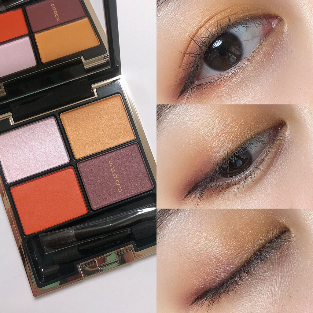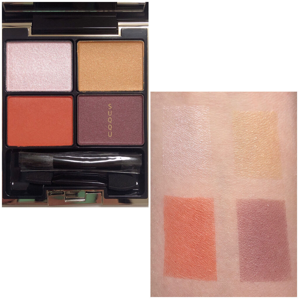 【SUQQU】✔️デザイニングカラーアイズS03霜花赤みブラウンがシックで惹かれたこちら…マット3色にラメが1色と潔い配色なのも好きです!甘艶のラメを控えめにしてくすませた感じかなーとおもいつつなんか外視感あるなと思ったら廃盤になったカネボウ...