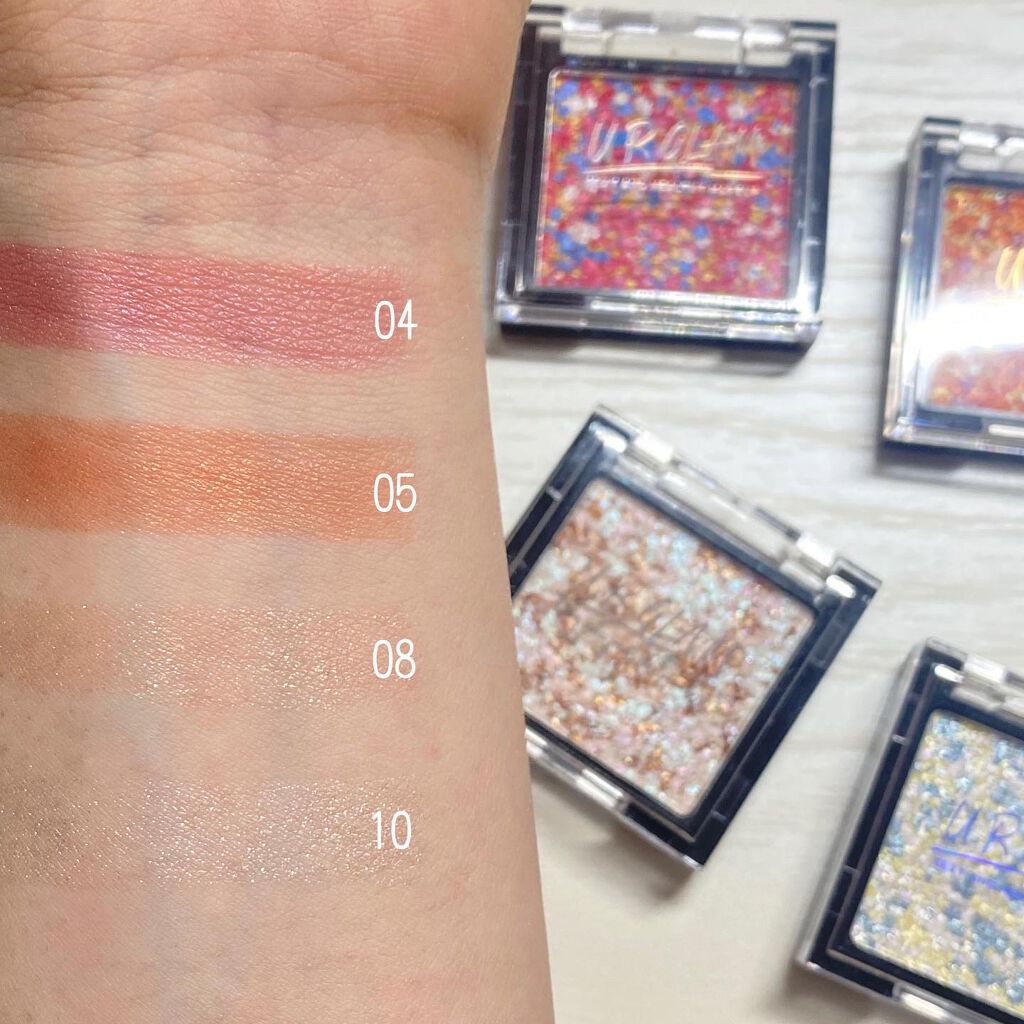 \PC問わず⁈コーラルブラウン/【URGLAMグリッターアイズ】☑️¥110☑️04グリッターコーラル肌なじみコーラル。グリッターとパール、マットカラーが楽しめる4色パレット🎨左下④やわらかなコーラルブラウンカラーがPC問わずなじみが良く、上...