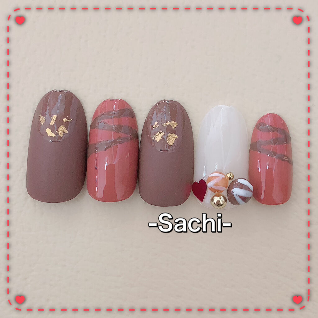 ワンカラーでも指ごとに色を変えるだけでオシャレに見えます💕 画像のようにゴールドラインとストーンを少し足すだけで華やかさがアップ🥰 何度かご紹介したことのあるスポンジで作るグラデーションです✨ スポンジを使うことで境目が綺麗に馴染んでくれます💕 アルミホイルの上でブラウンとトップコートを1:1くらいで混ぜたものを、トップコートのハケに取って3箇所に塗るだけ👌 事前に混ぜたものを塗ることで、爪の上でぼかすより簡単に出来ます💕 ベースカラーが乾く前に点置きしてぼかすことで綺麗にぼかせます✨ スピードが大事なので、使うポリッシュのキャップは全て開けておきましょう😊 天然石のラインはガタガタの方がより天然石っぽく見えるので、ラインを描くのが苦手な方でも大丈夫🙆♀️ 難しそうに見えて、やってみると意外と簡単に出来ます♡