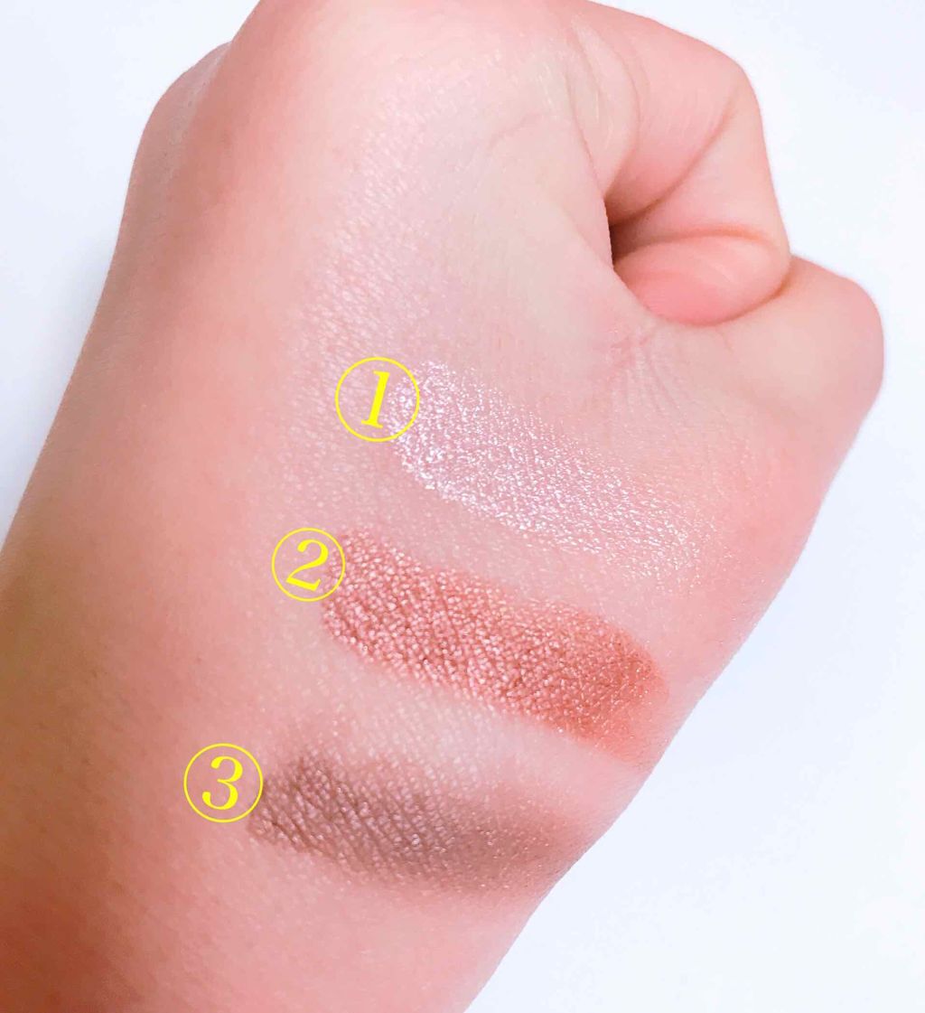 - 3色で簡単に明るく大きな目元に。 しっとり感触のアイシャドウ。 くすみを飛ばす明るさベース、ひとえ・奥二重の方でも幅広く塗れる肌なじみの良い中間色、 濃密高発色の締め色が目の輪郭を強調し大きな目元に。 微細パール配合でくすみを飛ばし、明るい目元へ。