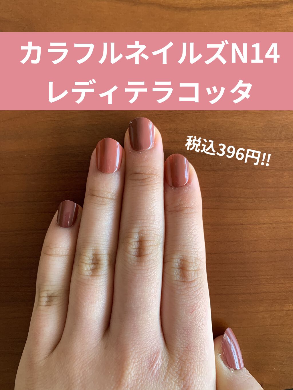 キャンメイクのポリッシュはプチプラなのに発色良し!艶感も綺麗!塗りやすい!の三拍子が整ってて頼りになりますよね。 安いのでチャレンジ色にも手を出しやすくて本当に感謝です🥲 今回は秋ということでテラコッタカラーをチョイスしてみました。 写真だと結構はっきりと色が出ちゃってますが実物はもう少しクリーミーでまろやかな色です。 肌馴染みも良く、誰でも使いやすい色なんじゃないかなと思います。 意外とどんなコーディネートにも合わせやすくて結構利用頻度高めです。