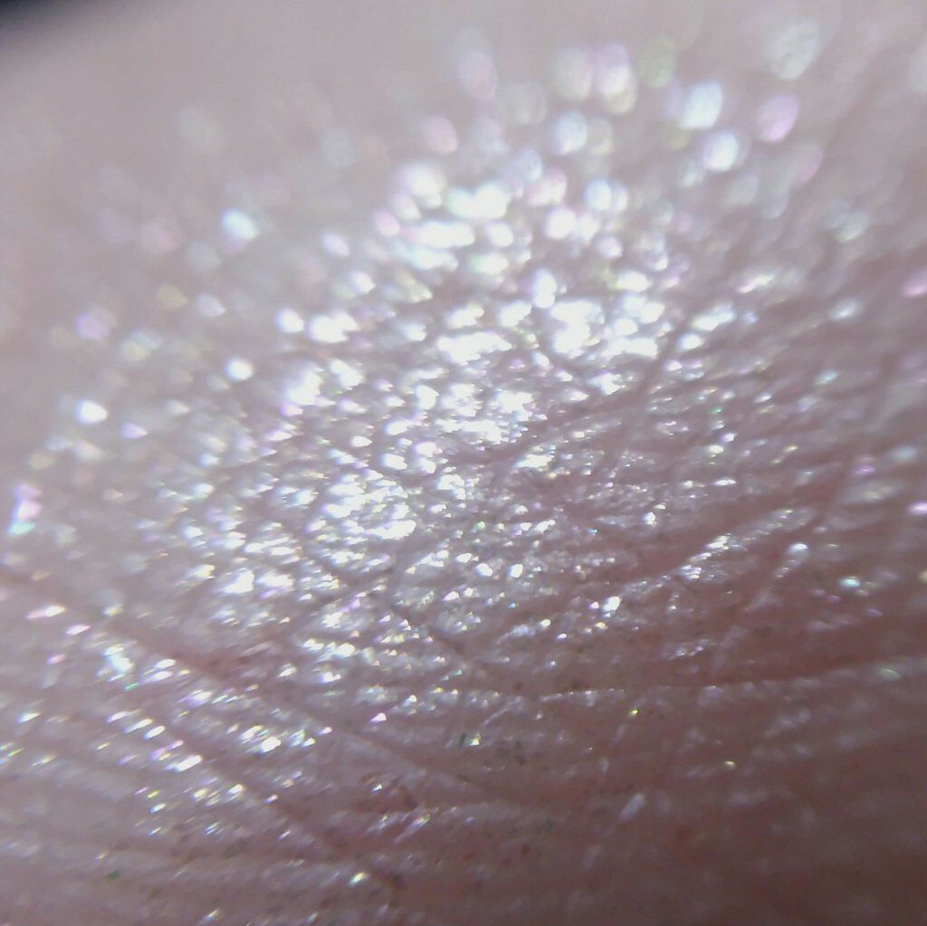 全部ラメ!キラキラ好き大歓喜のパレット😍😍😍 左下2色のグリッターはしっとりぺたぺたしている質感で瞼にしっかりくっついてくれます! ざっくり言うと上段はキラキラ中段はツヤツヤ下段はギラギラというイメージです。 全体的に色づきは控えめでラメ感を楽しめる🥳 全部キラッキラの宝石みたいな多色ラメですが、上段は青ラメ、中段はピンクラメ、下段はゴールドラメが目立つなーと思いました💖 名前も可愛い☁