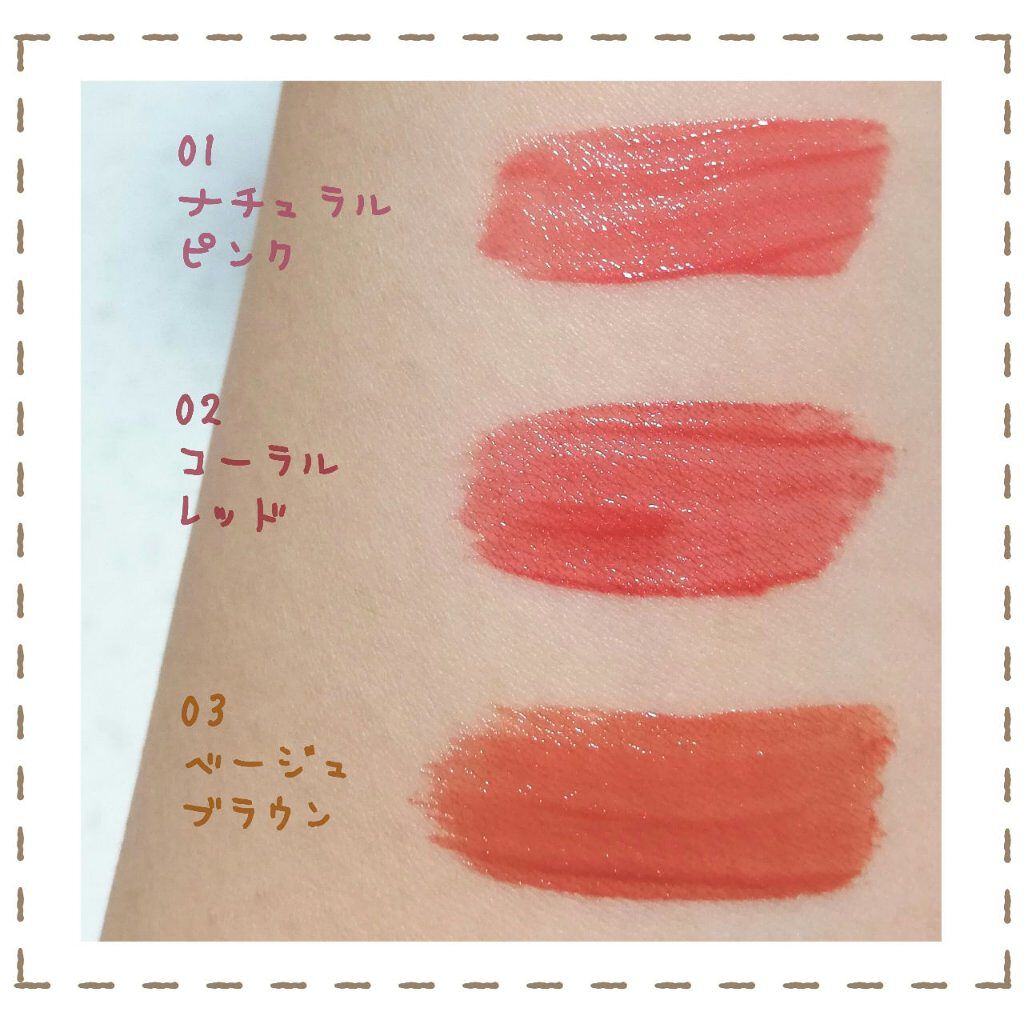 - <01 ナチュラルピンク> 水、ダイマージリノール酸(フィトステリル/イソステアリル/セチル/ステアリル/ベヘニル)、ダイマージリノール酸ダイマージリノレイル、ジフェニルシロキシフェニルトリメチコン、オクチルドデカノール、ラウロイルグルタミン酸ジ(フィトステリル/オクチルドデシル)、水添ポリイソブテン、BG、ジフェニルジメチコン、セテス-10、グリセリン、エタノール、セチルPEG/PPG-10/1ジメチコン、(アクリル酸ヒドロキシエチル/アクリロイルジメチルタウリンNa)コポリマー、イソヘキサデカン、フェノキシエタノール、メチルパラベン、トコフェロール、ポリソルベート60、エチルパラベン、デヒドロ酢酸Na、リン酸2Na、リン酸Na、イソステアリン酸ソルビタン、シメチコン、スクワラン、ハチミツ、ステアリン酸ソルビタン、ステアリン酸グリセリル、ローヤルゼリーエキス、オレイン酸ポリグリセリル-10、セルロースガム、ヒアルロン酸Na、ローズマリー葉エキス、カミツレ花エキス、水溶性コラーゲン、クエン酸、クエン酸Na、(+/-)ジカプリン酸ネオペンチルグリコール、トリイソステアリン酸ポリグリセリル-2、酸化チタン、マイカ、赤227、黄4、青1、水酸化Al、ポリアスパラギン酸Na、シリカ、キサンタンガム、EDTA-2Na、酸化鉄、PVP <02 コーラルレッド> 水、ダイマージリノール酸(フィトステリル/イソステアリル/セチル/ステアリル/ベヘニル)、ダイマージリノール酸ダイマージリノレイル、ジフェニルシロキシフェニルトリメチコン、オクチルドデカノール、ラウロイルグルタミン酸ジ(フィトステリル/オクチルドデシル)、水添ポリイソブテン、BG、ジフェニルジメチコン、セテス-10、グリセリン、エタノール、セチルPEG/PPG-10/1ジメチコン、(アクリル酸ヒドロキシエチル/アクリロイルジメチルタウリンNa)コポリマー、イソヘキサデカン、フェノキシエタノール、メチルパラベン、トコフェロール、ポリソルベート60、エチルパラベン、デヒドロ酢酸Na、リン酸2Na、リン酸Na、イソステアリン酸ソルビタン、シメチコン、スクワラン、ハチミツ、ステアリン酸ソルビタン、ステアリン酸グリセリル、ローヤルゼリーエキス、オレイン酸ポリグリセリル-10、セルロースガム、ヒアルロン酸Na、ローズマリー葉エキス、カミツレ花エキス、水溶性コラーゲン、クエン酸、クエン酸Na、(+/-)ジカプリン酸ネオペンチルグリコール、トリイソステアリン酸ポリグリセリル-2、酸化チタン、マイカ、赤227、黄4、青1、水酸化Al、ポリアスパラギン酸Na、シリカ、キサンタンガム、EDTA-2Na、酸化鉄、PVP <03 ベージュブラウン> 水、ダイマージリノール酸(フィトステリル/イソステアリル/セチル/ステアリル/ベヘニル)、ダイマージリノール酸ダイマージリノレイル、ジフェニルシロキシフェニルトリメチコン、オクチルドデカノール、ラウロイルグルタミン酸ジ(フィトステリル/オクチルドデシル)、水添ポリイソブテン、BG、ジフェニルジメチコン、セテス-10、グリセリン、エタノール、セチルPEG/PPG-10/1ジメチコン、(アクリル酸ヒドロキシエチル/アクリロイルジメチルタウリンNa)コポリマー、イソヘキサデカン、フェノキシエタノール、メチルパラベン、トコフェロール、ポリソルベート60、エチルパラベン、デヒドロ酢酸Na、リン酸2Na、リン酸Na、イソステアリン酸ソルビタン、シメチコン、スクワラン、ハチミツ、ステアリン酸ソルビタン、ステアリン酸グリセリル、ローヤルゼリーエキス、オレイン酸ポリグリセリル-10、セルロースガム、ヒアルロン酸Na、ローズマリー葉エキス、カミツレ花エキス、水溶性コラーゲン、クエン酸、クエン酸Na、(+/-)ジカプリン酸ネオペンチルグリコール、トリイソステアリン酸ポリグリセリル-2、酸化チタン、マイカ、赤227、黄4、青1、水酸化Al、ポリアスパラギン酸Na、シリカ、キサンタンガム、EDTA-2Na、酸化鉄、PVP <05 プラムレッド> 水、ダイマージリノール酸(フィトステリル/イソステアリル/セチル/ステアリル/ベヘニル)、ダイマージリノール酸ダイマージリノレイル、ジフェニルシロキシフェニルトリメチコン、オクチルドデカノール、ラウロイルグルタミン酸ジ(フィトステリル/オクチルドデシル)、水添ポリイソブテン、BG、ジフェニルジメチコン、セテス-10、グリセリン、エタノール、セチルPEG/PPG-10/1ジメチコン、(アクリル酸ヒドロキシエチル/アクリロイルジメチルタウリンNa)コポリマー、イソヘキサデカン、フェノキシエタノール、メチルパラベン、トコフェロール、ポリソルベート60、エチルパラベン、デヒドロ酢酸Na、リン酸2Na、リン酸Na、イソステアリン酸ソルビタン、シメチコン、スクワラン、ハチミツ、ステアリン酸ソルビタン、ステアリン酸グリセリル、ローヤルゼリーエキス、オレイン酸ポリグリセリル-10、セルロースガム、ヒアルロン酸Na、ローズマリー葉エキス、カミツレ花エキス、水溶性コラーゲン、クエン酸、クエン酸Na、(+/-)ジカプリン酸ネオペンチルグリコール、トリイソステア