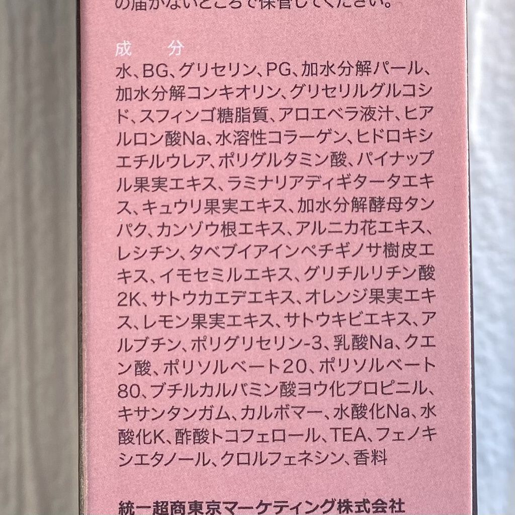 - <4枚入> 水、BG、グリセリン、PG、アロエベラ液汁、ヒアルロン酸Na、パイナップル果実エキス、ラミナリアディギタータエキス、キュウリ果実エキス、加水分解酵母タンパク、TEA、フ、ノキシエタノール、クロルフェネシン、カンゾウ根エキス、水溶性コラーゲン、ヒドロキ、エチルウレア、アルニカ花エキス、レシチン、クエン酸、加水分解パール、加水分解コンキオリン、タベブイアインペチギノサ樹皮エキス、ポリソルベート20、イモセミルエキス、グリチルリチン酸2K、ポリソルベート80、サトウカエデエキス、オレンジ果実エキス、レモン果実エキス、サトウキビエキス、グリセリルグルコシド、ポリグルタミン酸、ブチルカルバミン酸ヨウ化プロピニル、キサンタンガム、カルボマー、香料、スフィンゴ糖脂質、ポリグリセリン-3、乳酸Na、水酸化Na、水酸化K、アルブチン、酢酸トコフェロール <8枚入> 水、BG、グリセリン、PG、アロエベラ液汁、ヒアルロン酸Na、パイナップル果実エキス、ラミナリアディギタータエキス、キュウリ果実エキス、加水分解酵母タンパク、TEA、フ、ノキシエタノール、クロルフェネシン、カンゾウ根エキス、水溶性コラーゲン、ヒドロキ、エチルウレア、アルニカ花エキス、レシチン、クエン酸、加水分解パール、加水分解コンキオリン、タベブイアインペチギノサ樹皮エキス、ポリソルベート20、イモセミルエキス、グリチルリチン酸2K、ポリソルベート80、サトウカエデエキス、オレンジ果実エキス、レモン果実エキス、サトウキビエキス、グリセリルグルコシド、ポリグルタミン酸、ブチルカルバミン酸ヨウ化プロピニル、キサンタンガム、カルボマー、香料、スフィンゴ糖脂質、ポリグリセリン-3、乳酸Na、水酸化Na、水酸化K、アルブチン、酢酸トコフェロール