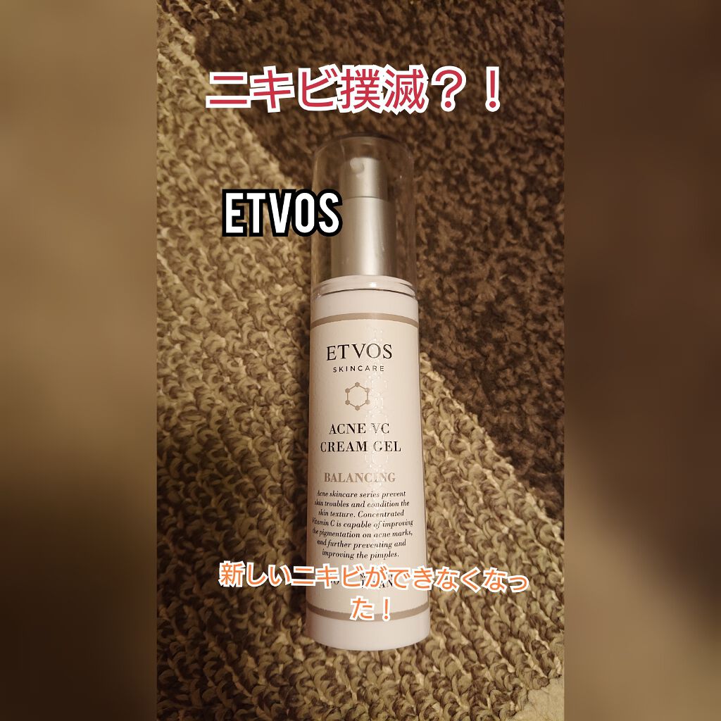 ETVOSアクネVCクリームジェルこれ初めてから新たなニキビできなくなりました!!今まで7日に1回は必ずというほどニキビできて、それがまた化膿して、、を繰り返していましたがいま1ヶ月ほど使用してますができてません!感動😂でも残りの赤ニキビはま...
