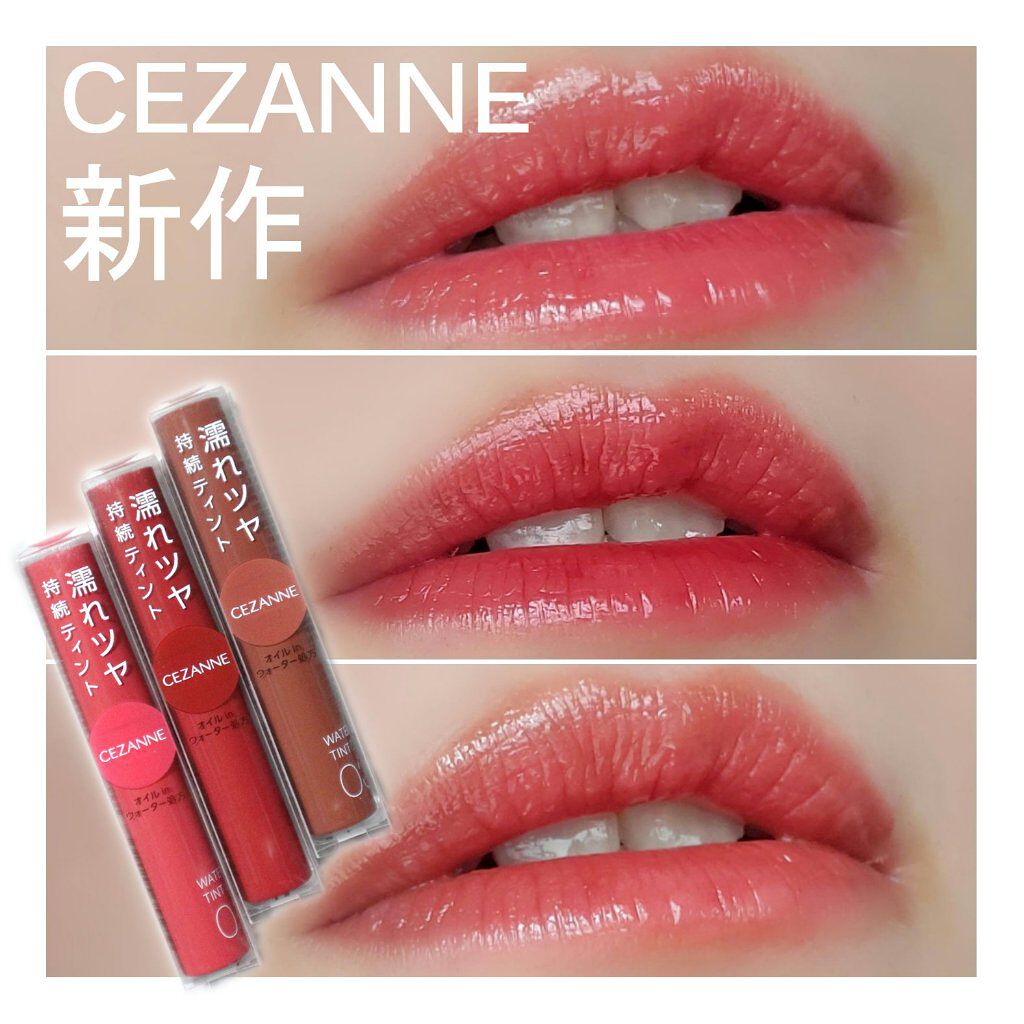 - ツヤ×色×潤いをキープする、セザンヌの新濡れツヤリップ みずみずしい濡れツヤ感ある仕上がりで、発色とツヤが長続きするティントリップです。ティントの発色を透明のベールで覆うリップコートのような処方で、ツヤ感と色をキープします。さらに、唇表面のべたつきは少なく、しっとり潤うオイルinウォーター処方を採用しています。
