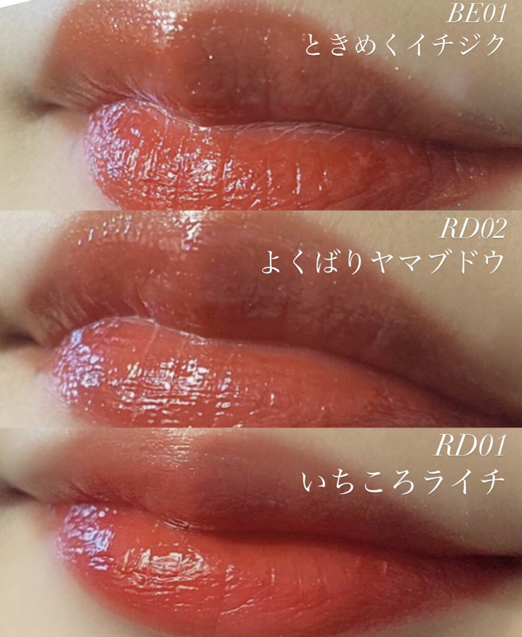 - Point 1 ジューシーなもぎたて果実のような発色が長時間続く Point 2 キラキラ輝くスパークリングジュエリーパウダー配合 Point 3 リップケアオイル配合で、クリアな光沢感のある仕上がり RD03、CR02は公式オンライン限定発売