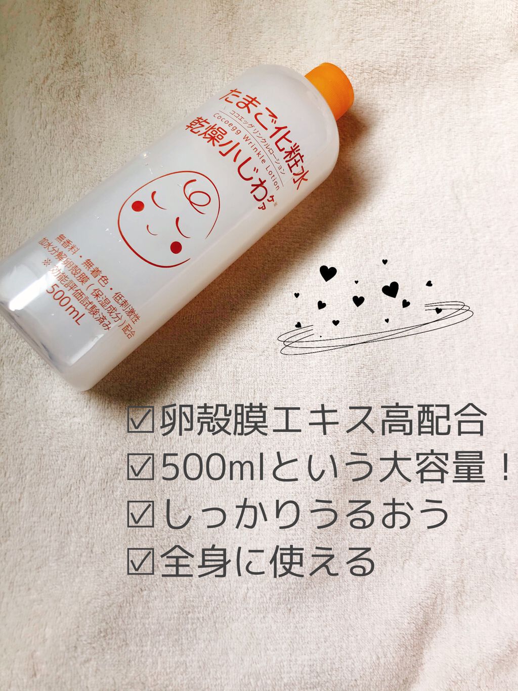 - 2023年4月3日リニューアル発売 「たまご化粧水」は卵由来の天然成分「加水分解卵角膜エキス」配合の化粧水です。 しっとりしているのにベタつかない感触でお肌になじみます。 顔や全身にも使える大容量タイプなのでお風呂上りにたっぷりお使いいただけます。 コットンなどにたっぷり含ませて5分ほどパックするとさらに効果的です。 無香料、無着色、低刺激性、オイルフリー、界面活性剤フリーです。