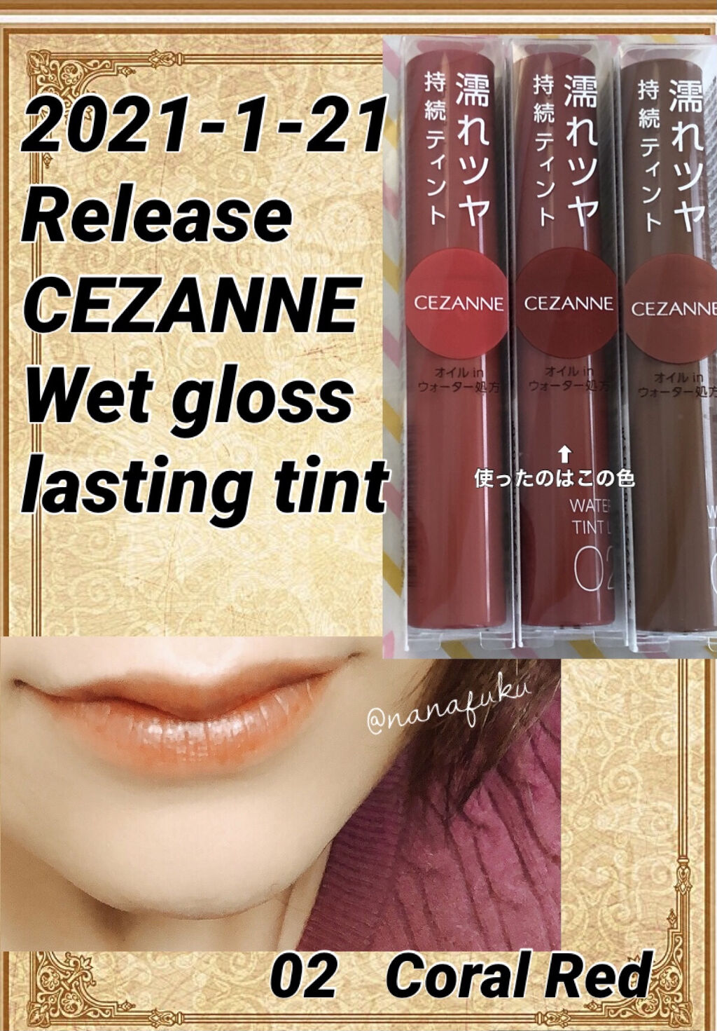 - ツヤ×色×潤いをキープする、セザンヌの新濡れツヤリップ みずみずしい濡れツヤ感ある仕上がりで、発色とツヤが長続きするティントリップです。ティントの発色を透明のベールで覆うリップコートのような処方で、ツヤ感と色をキープします。さらに、唇表面のべたつきは少なく、しっとり潤うオイルinウォーター処方を採用しています。