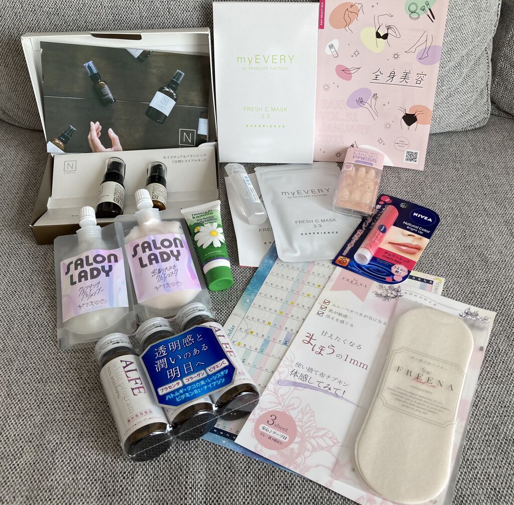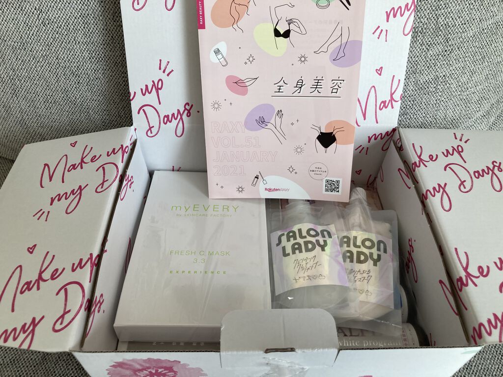 RAXY1月号レポです😊💕個人的には大当たり!と感じる豪華なボックスでした🎁★マークは現品・市販品です●雪姫輝肌 六歌仙 日本酒フェイスマスク3枚入り★(参考価格1280円)●ニベア ナチュラルカラーリップ ブライトアップ チェリーレッド★(...