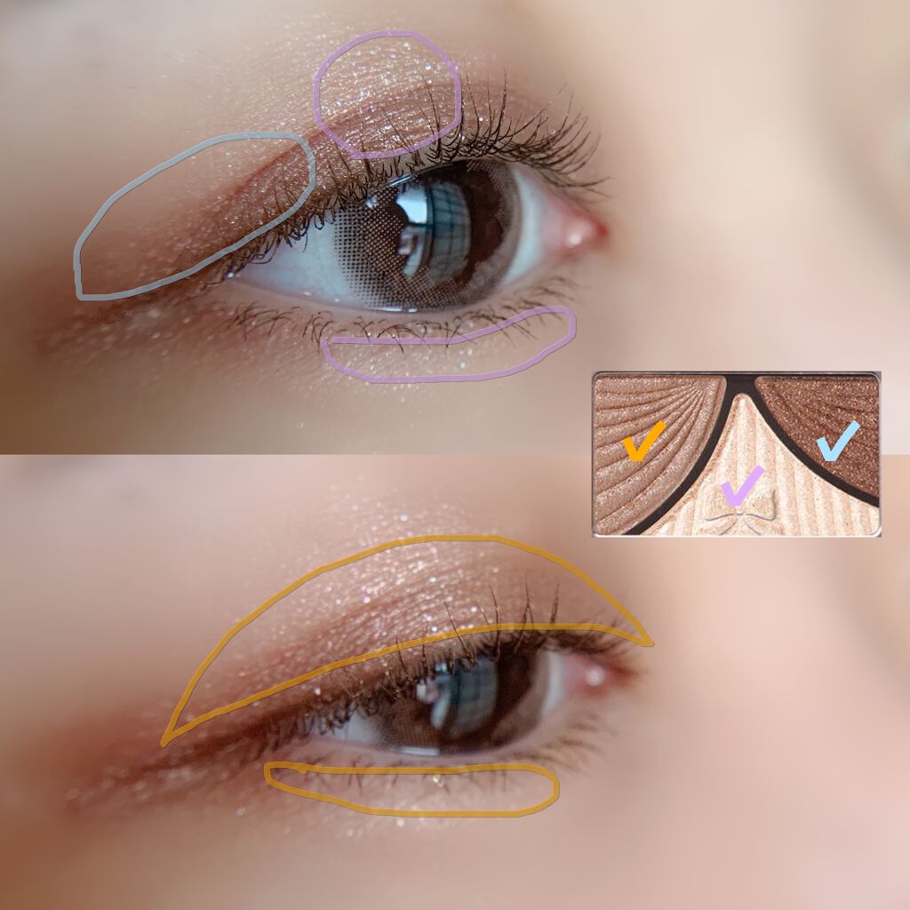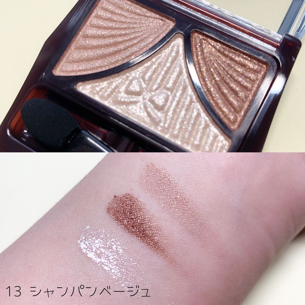 - パウダーなのにみずみずしい♥ 自然な立体感をつくりだす3色アイシャドウパレット 仕上げのコートで、ジューシー感&モチUP! メインカラー&ラインカラーはフィッティングオイル配合のしっとりパウダーで、 まぶたに吸いつくように溶け込み、ジューシーコートスフレで覆うことによって、 濡れたようにツヤめく愛されまぶたで透明感のある目元を演出します。
