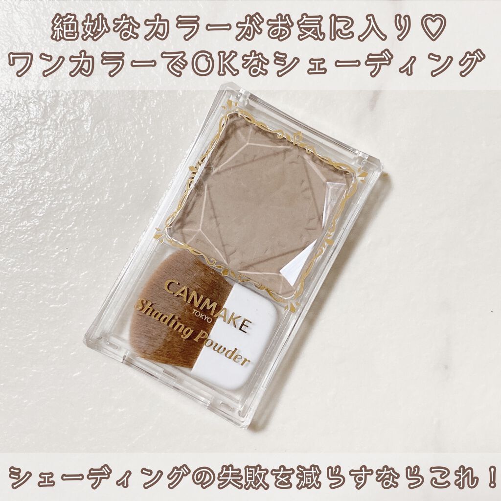 CANMAKE/キャンメイクシェーディングパウダーCOLOR:05ムーングレージュさっと人刷けで、憧れ立体小顔ビジンに♡プチプラコスメで人気のキャンメイク♪パッケージはクリアで、ハートやリボンのデザインも可愛い♡♡♡専用の平ブラシは、やわらか...