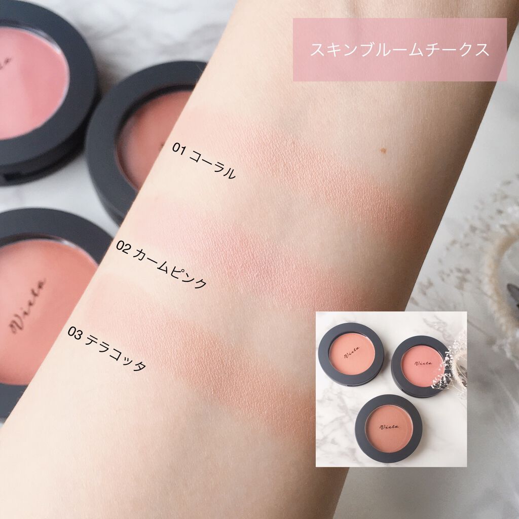 青み強めかと思いき下3段を使うとイエベ春さんにも似合いそうなカラー。特に下段真ん中の少しパール感のあるグレーブラウンが使いやすい! 淡い発色で儚げな冬にぴったりの雰囲気になれる❄️ 意外と10ラブポーションのオレンジが白みがかっていてオレンジチークが苦手なブルベでも使いやすい! パウダーだけどしっとりと肌への密着度が高く自然なツヤ感を足せるのが嬉しい。華やかな印象にしたいときはトワイライト、しっかりツヤ感を見せたいときはフロスティを使うのが個人的におすすめ🫧
