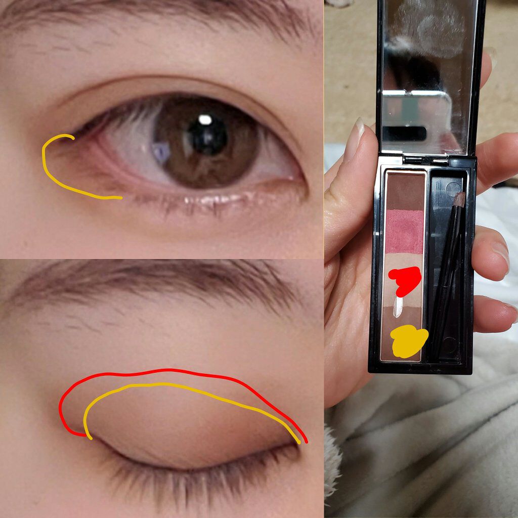 お疲れ様です!今日は最近の毎日メイク!目の幅を出したくて横に広くを意識してます!使ったのはURGLAM、リシェカラーリングアイブロウパウダー、ゴージャス姉妹❤をアイホール、涙袋全体💛を二重幅、目尻少し(際に塗らず少し隙間を開けるといい気がする...